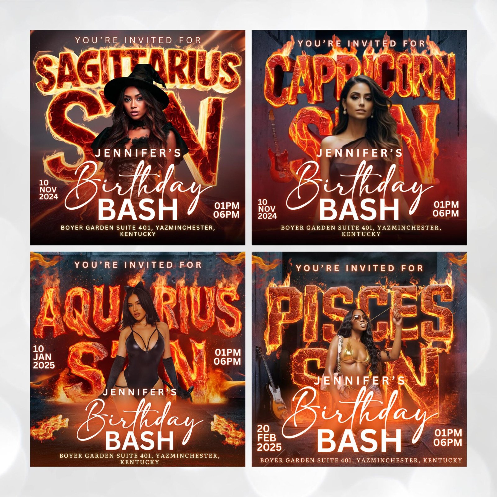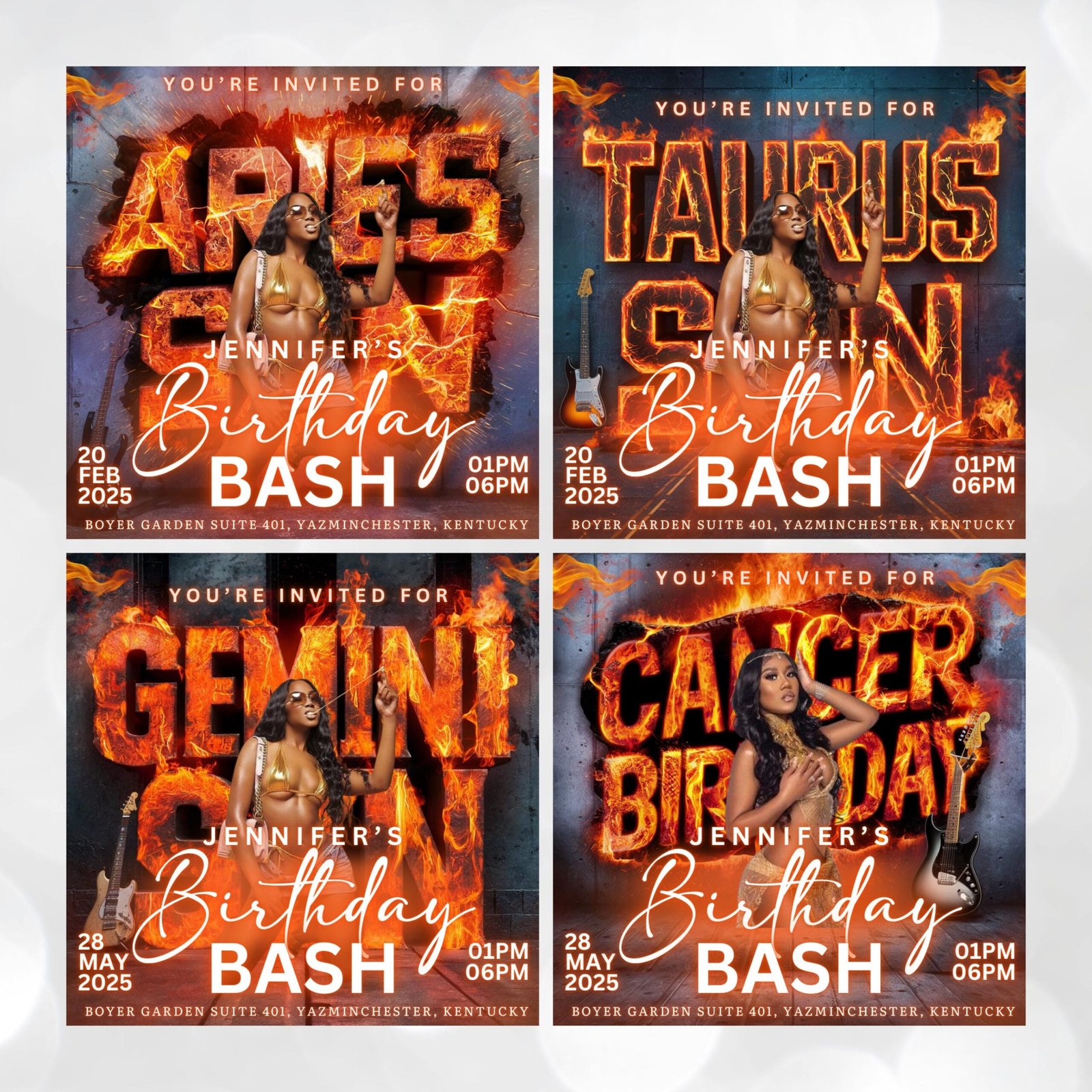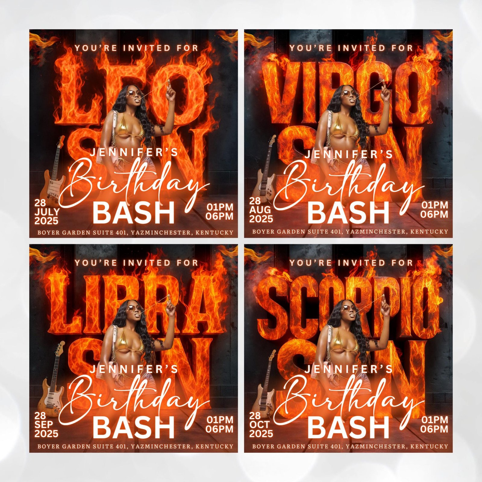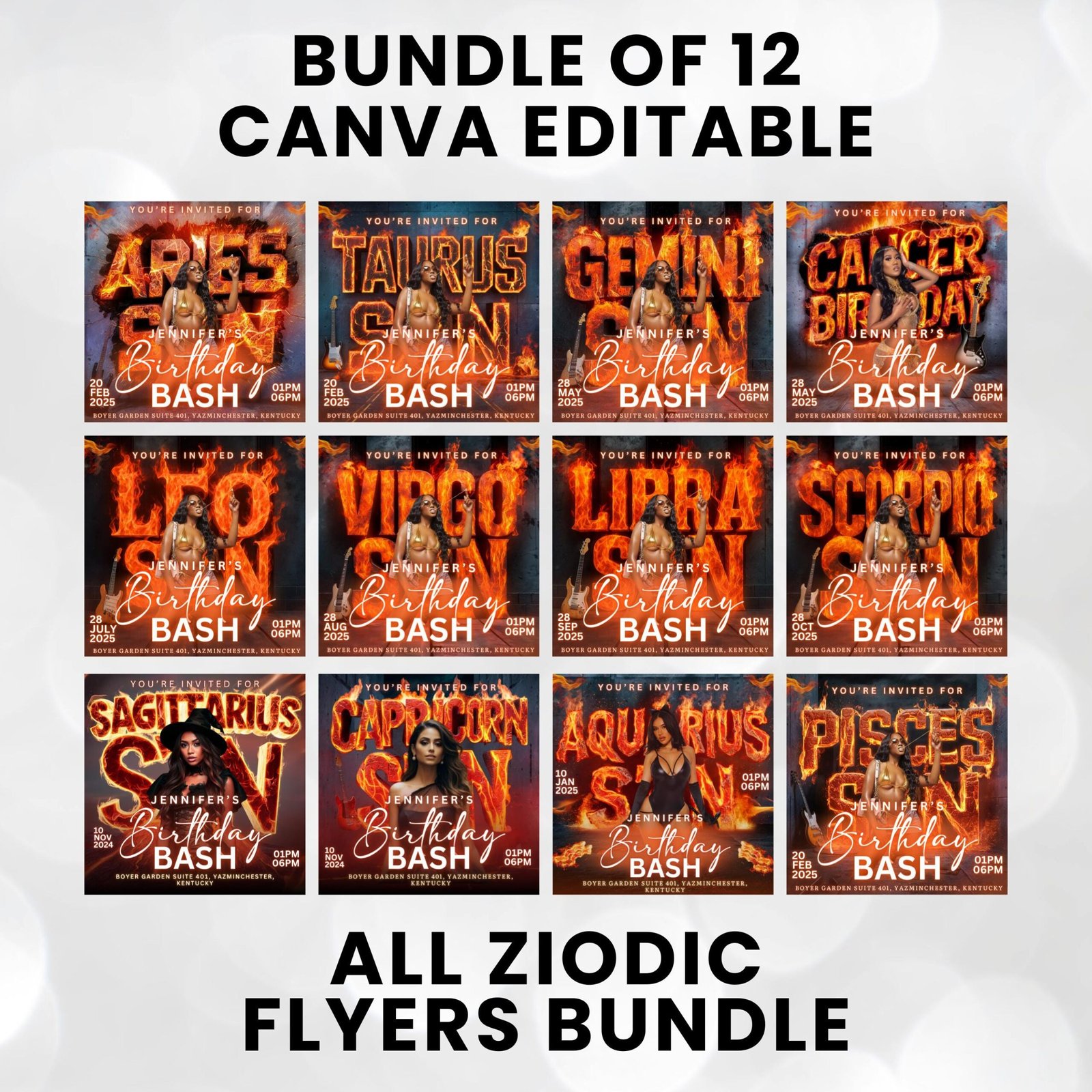 All Zodiac flyer bundle, Leo Birthday Flyer, All Birthday Template, Birthday Girl,Party Flyer bundle Celebration Flyer,Canva Flyer Template