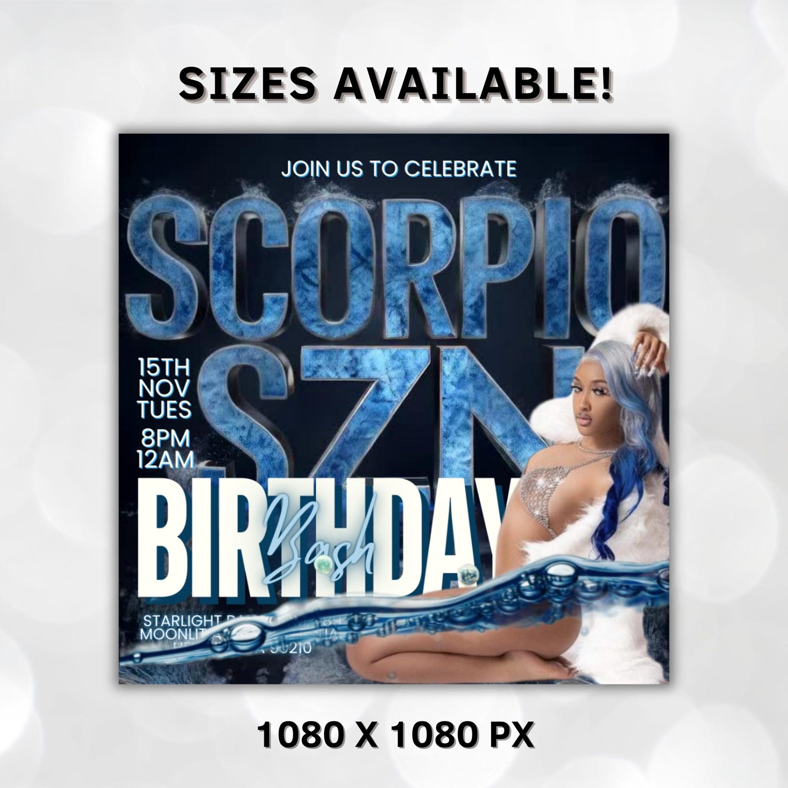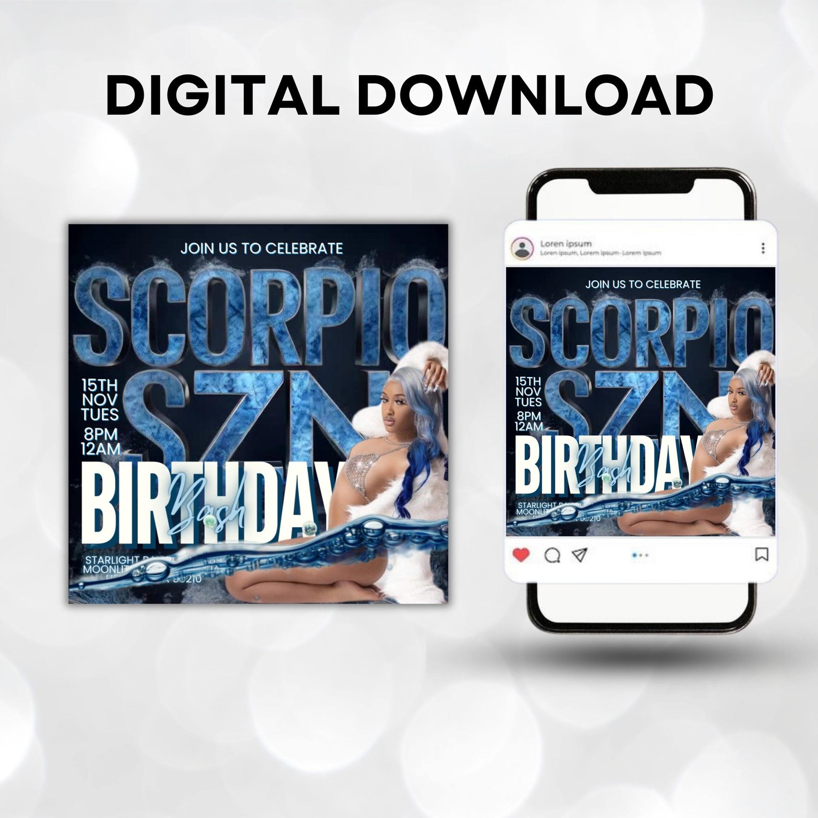 Animated Scorpio Birthday Flyer, Birthday Template, Birthday Girl, Party Flyer, Celebration Flyer Birthday Event Birthday Invite Canva Flyer