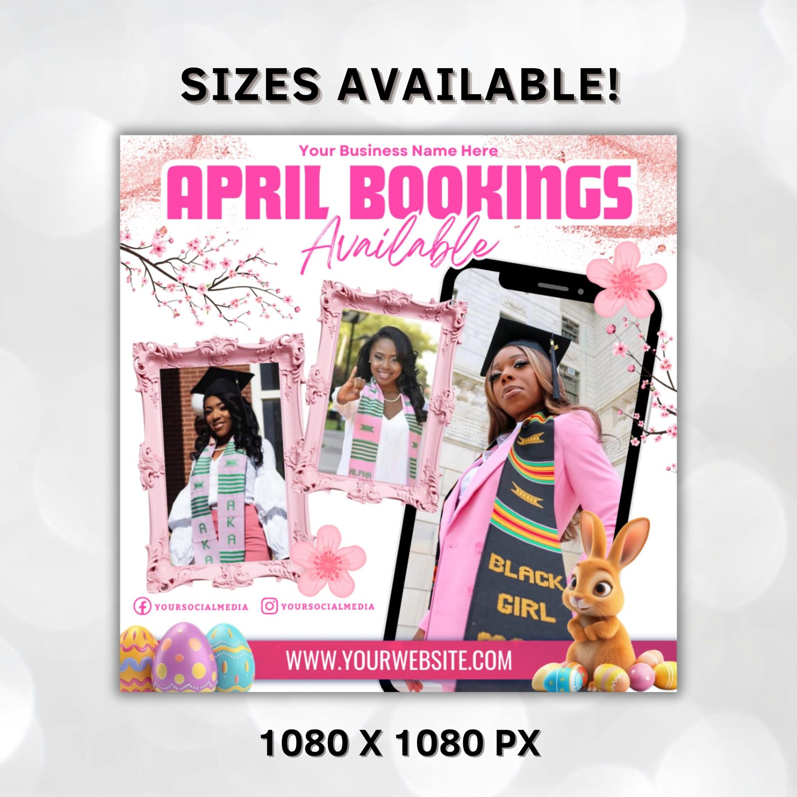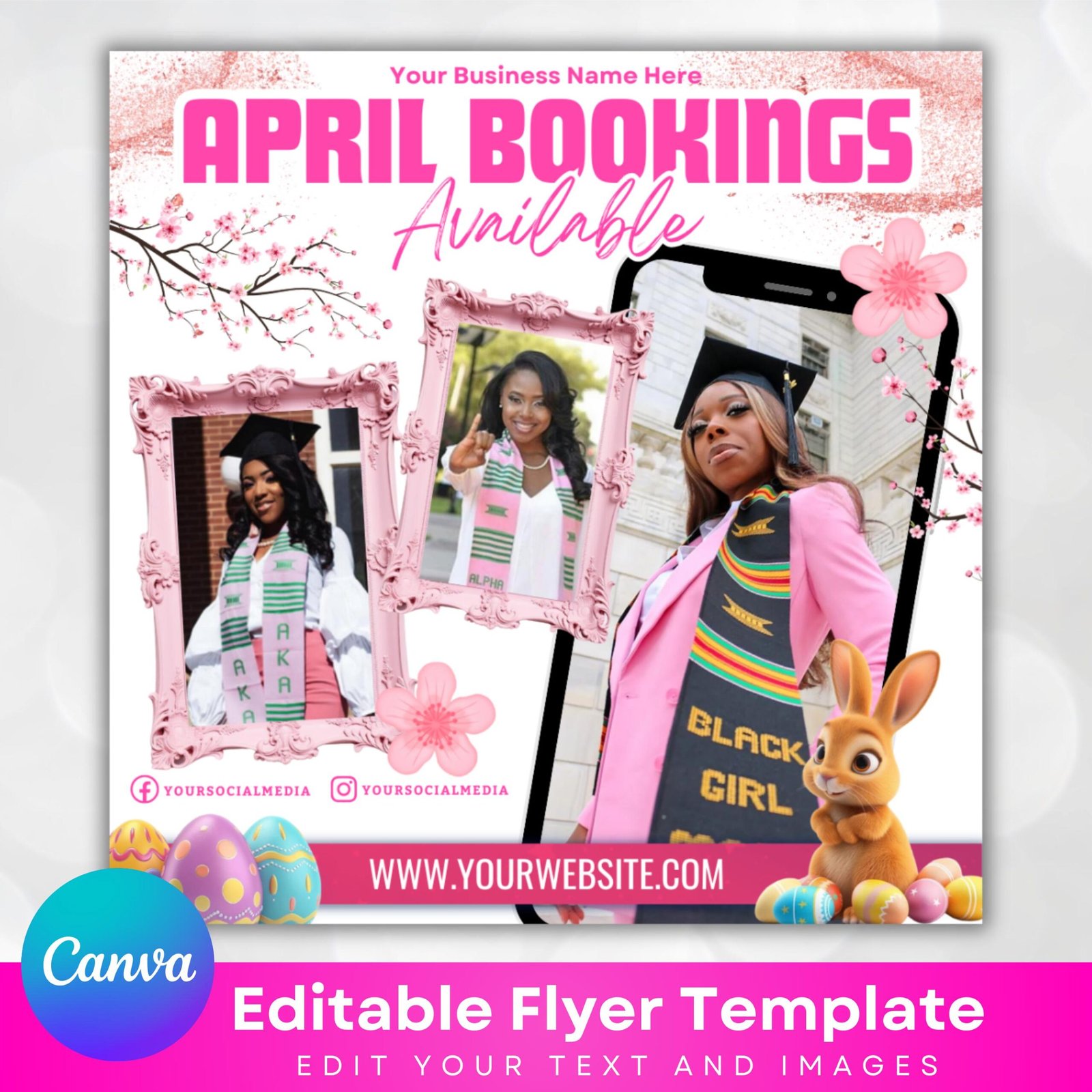 April Booking Flyer Canva Template, Diy April Flyer, Hair Flyer, Easter Booking Flyer, Springs Flyers, April Makeup Flyer, Book Now Flyer