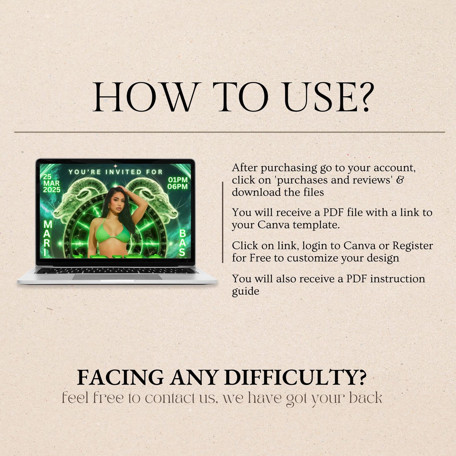 Purchase & Access – After payment, you’ll receive an email with a link to your editable design (sent to your Etsy-registered email).