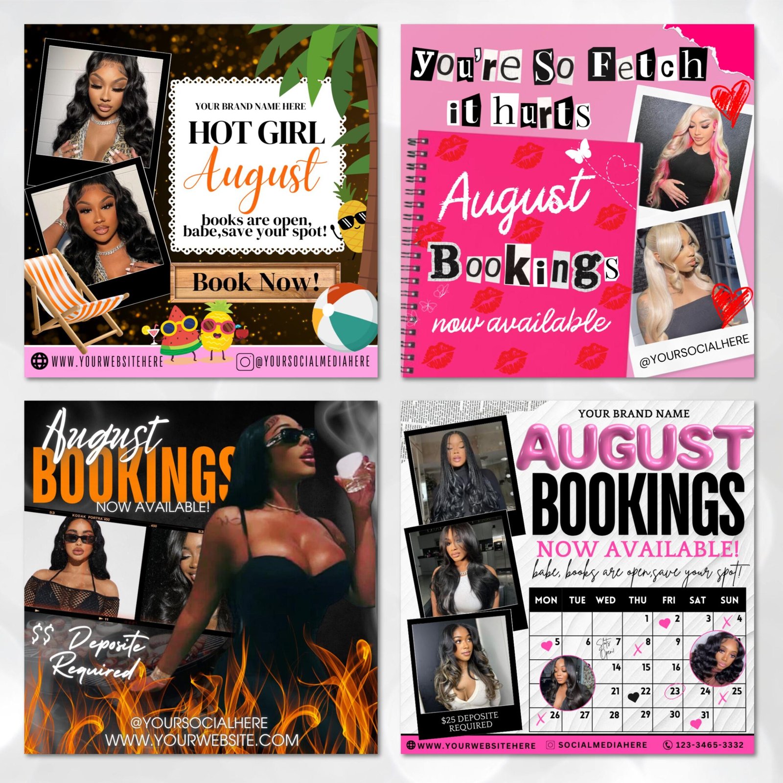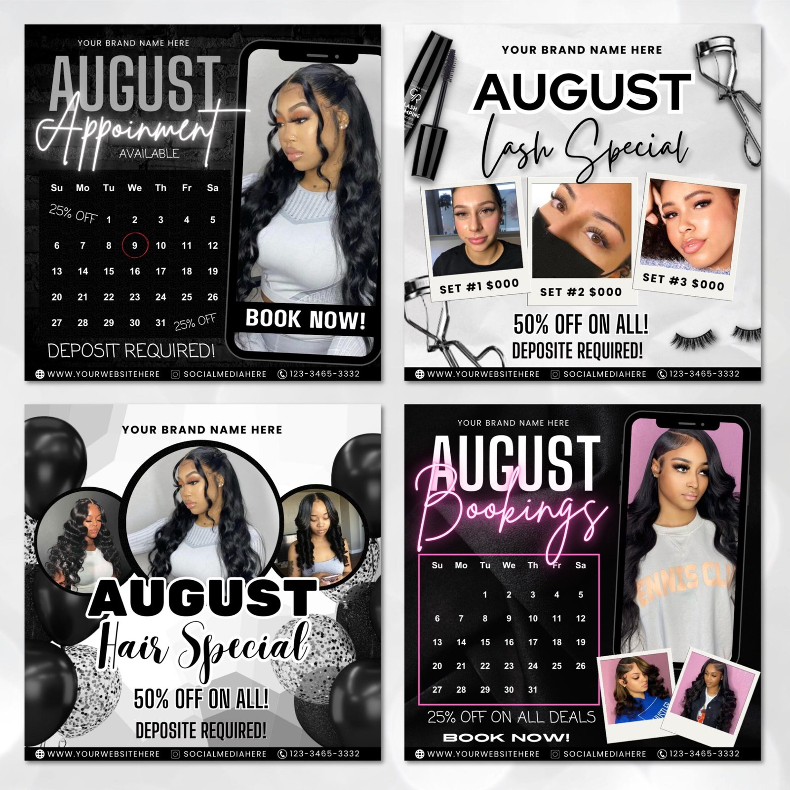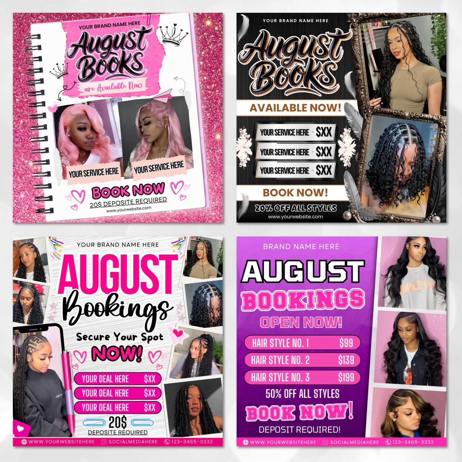August Booking Flyer Bundle, Month Booking Flyers, Hair,Lash,Nails,Makeup,Braids Flyer, Appointent Available Flyer, Editable Canva Template