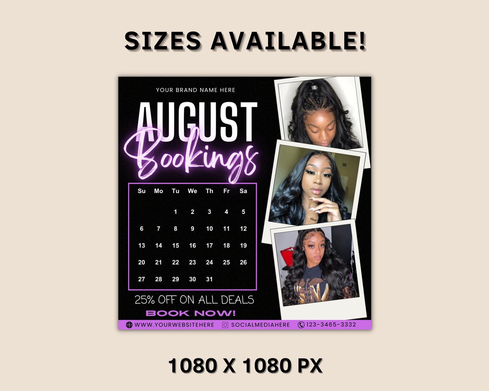 August Bookings Flyer, August Bookings Available, August Appointment Flyer, August Calendar Flyer, Hair, Nails, Makeup, Lashes, Braids, Wig
