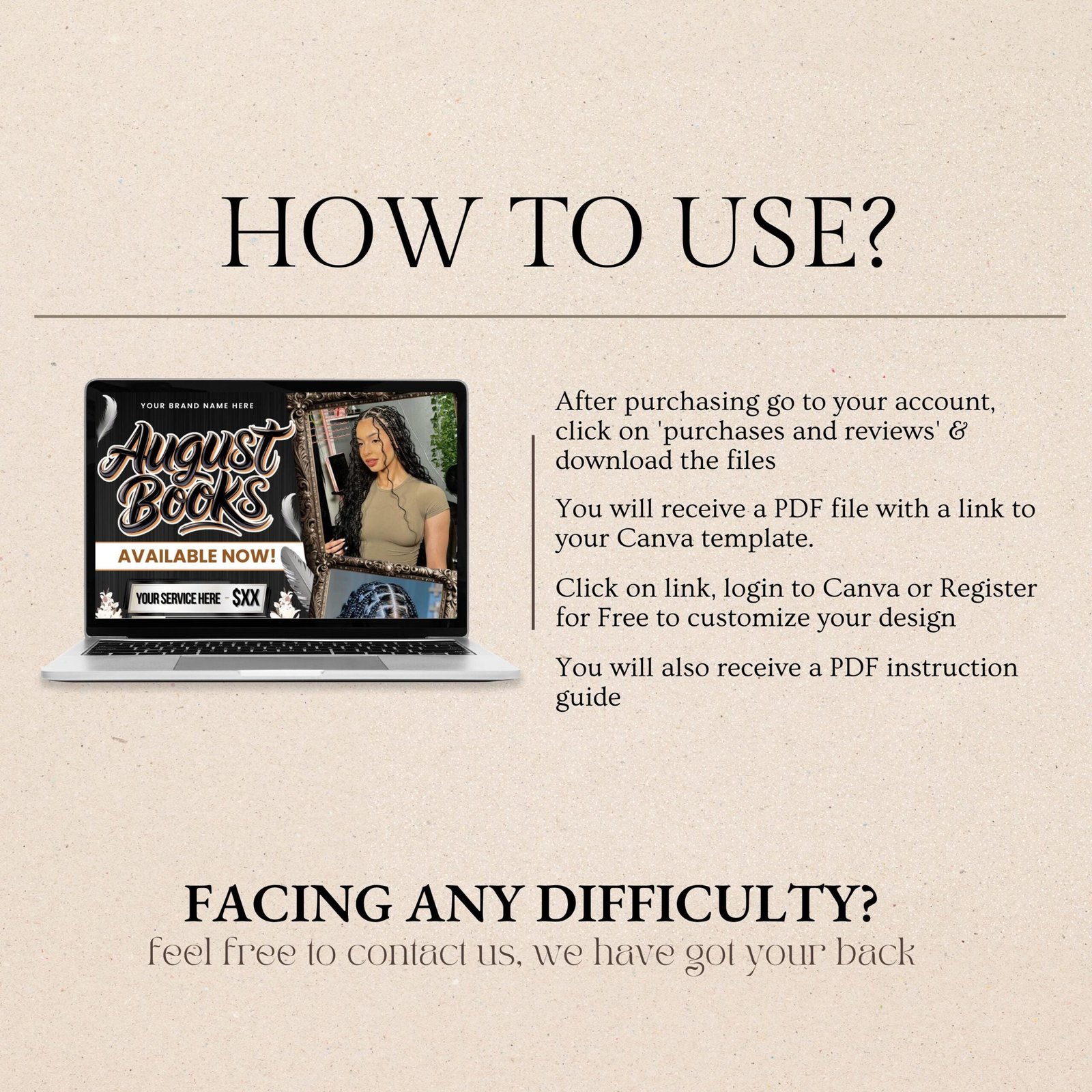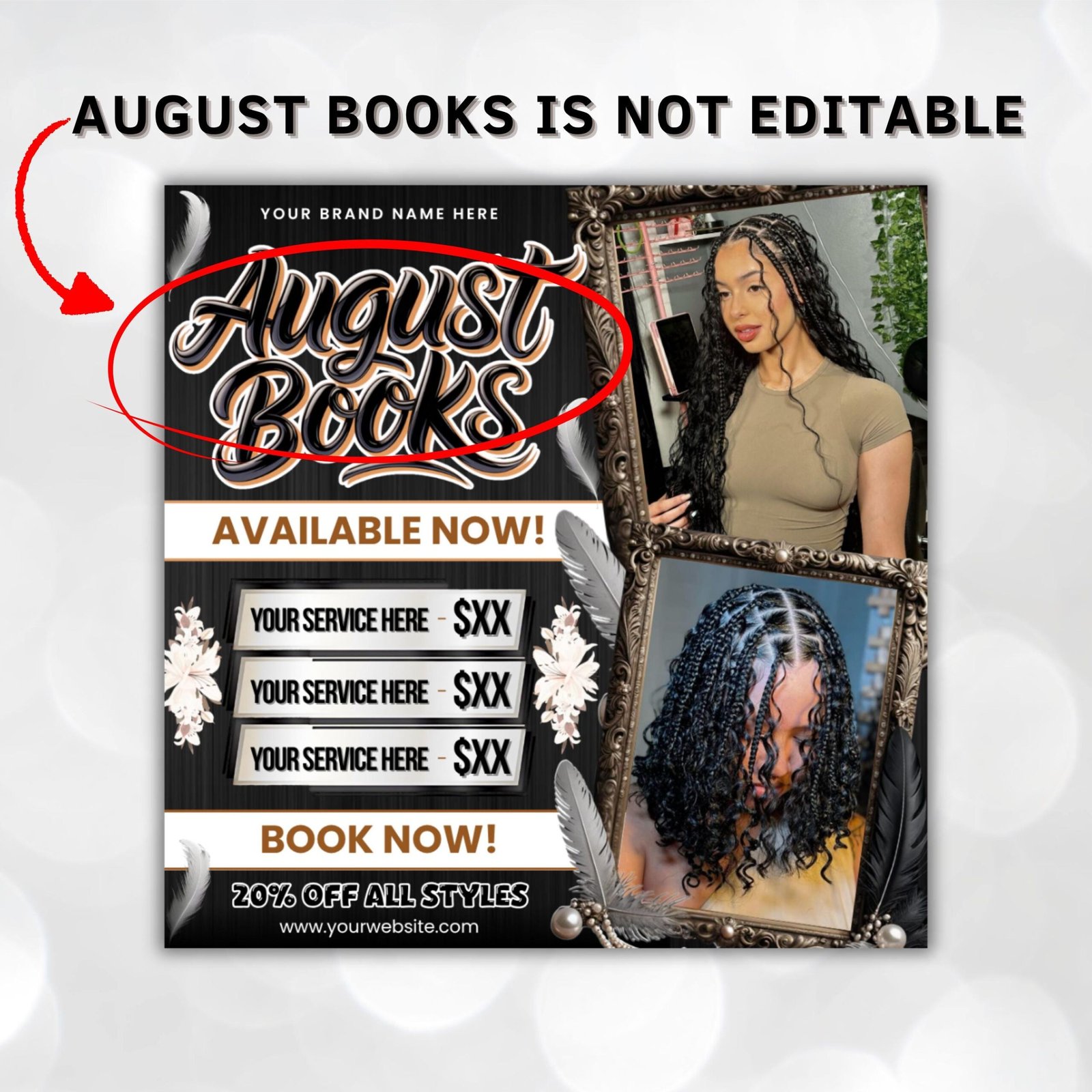 August Bookings Flyer, August Bookings Available, August Appointment Flyer, August Calendar Flyer, Hair, Nails, Makeup, Lashes, Braids, Wig