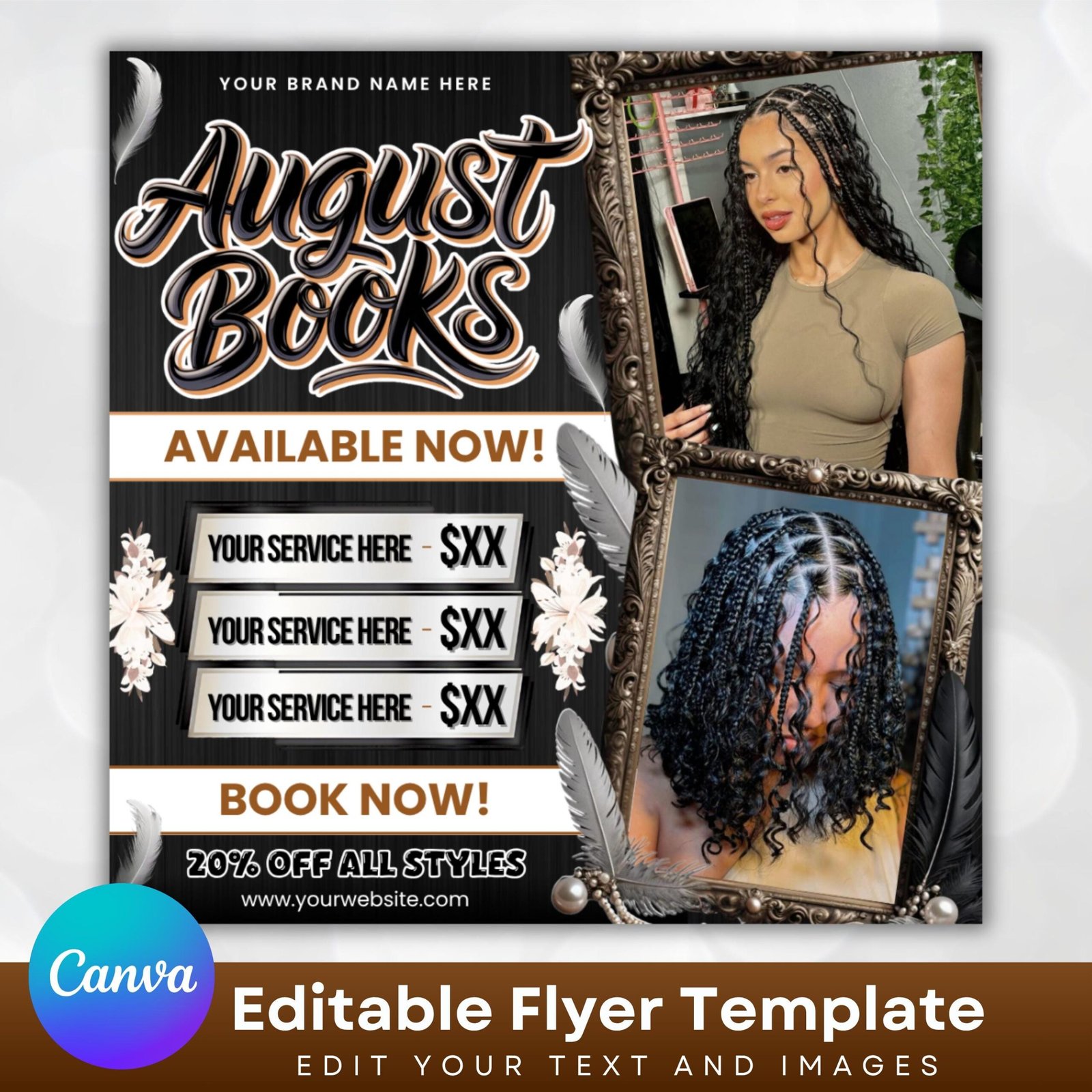August Bookings Flyer, August Bookings Available, Hair Special Flyer, August Appointment Flyer, August Calendar Flyer, Makeup, Booking Flyer