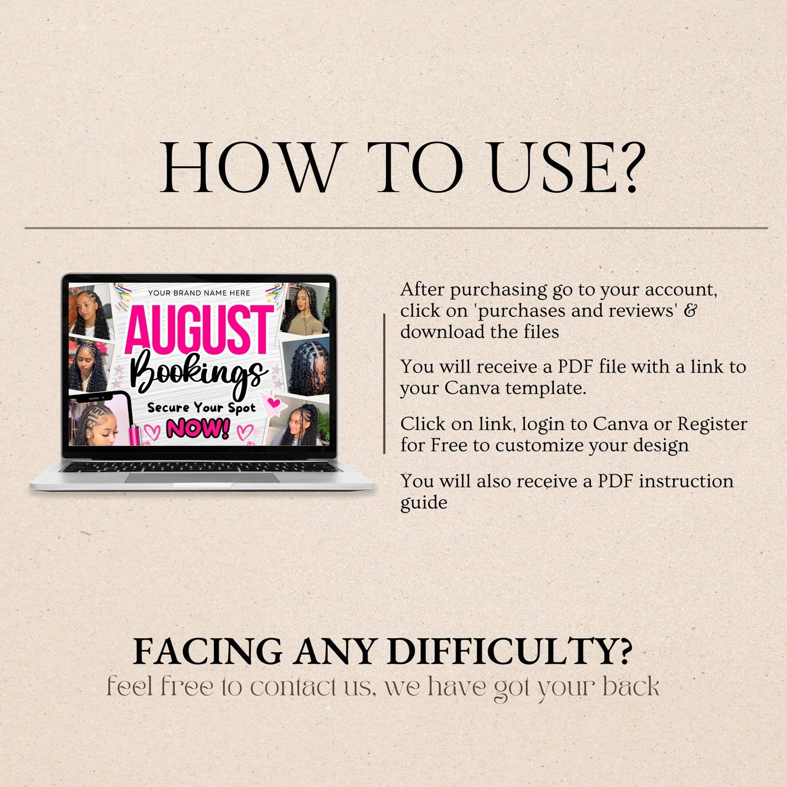 Purchase & Access – After payment, you’ll receive an email with a link to your editable design (sent to your Etsy-registered email).