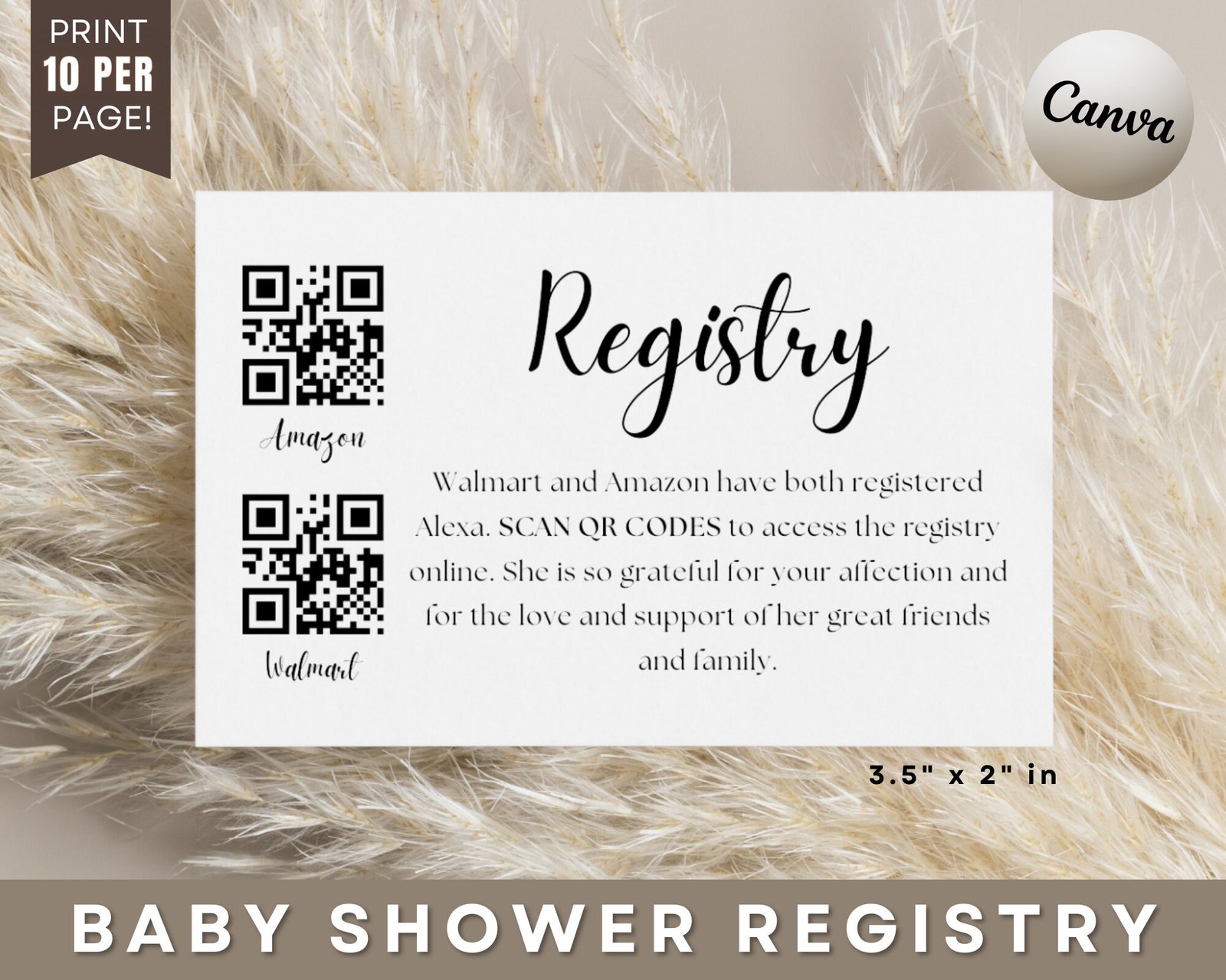 Baby shower registry card with qr codes for your online registry, printable gift registry qr code, how to create a qr code guide included