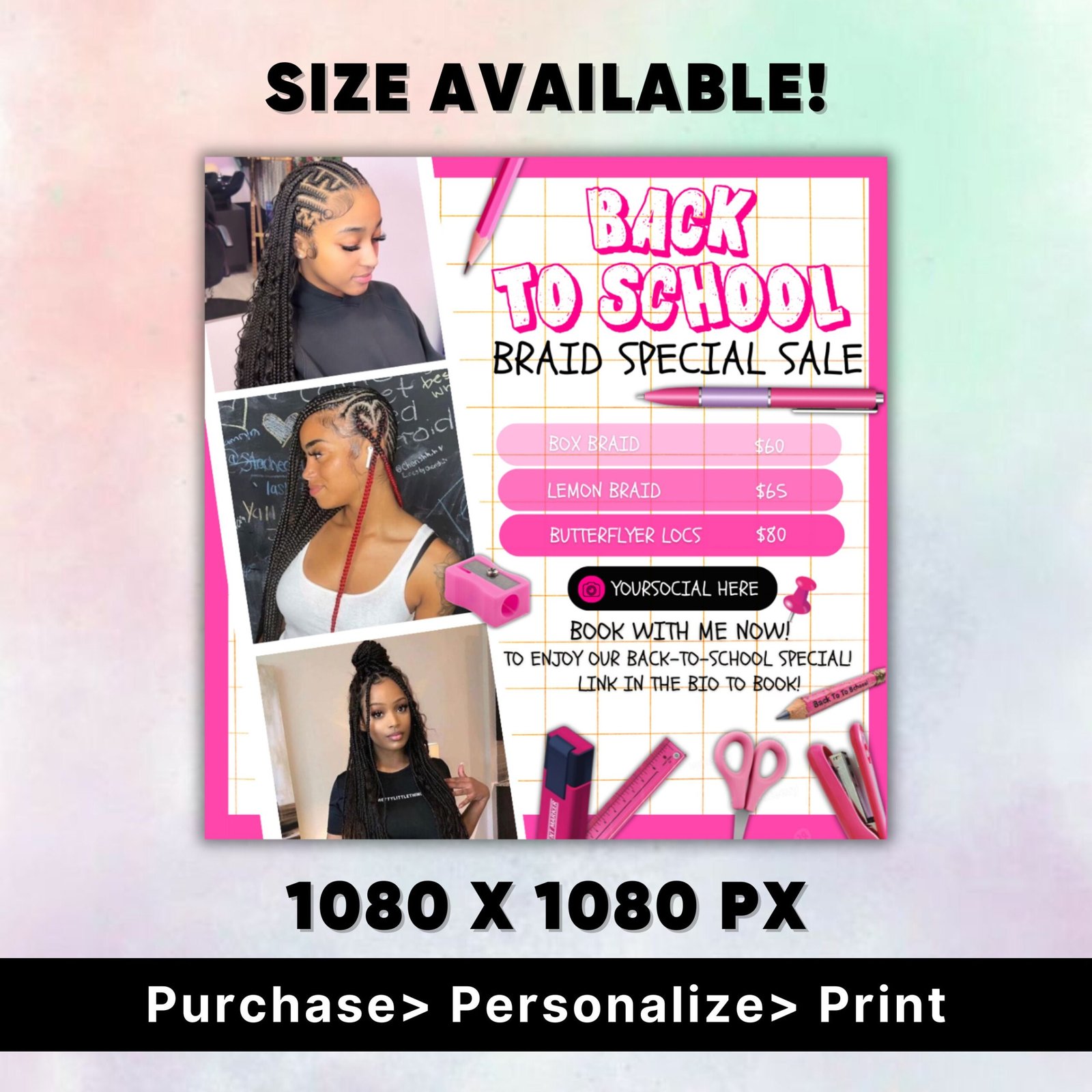 Back To School Flyer, Back to school sale flyer, Back to school Hair flyer, DIY canva template, Back 2 School Flyer, Braid Special Flyer