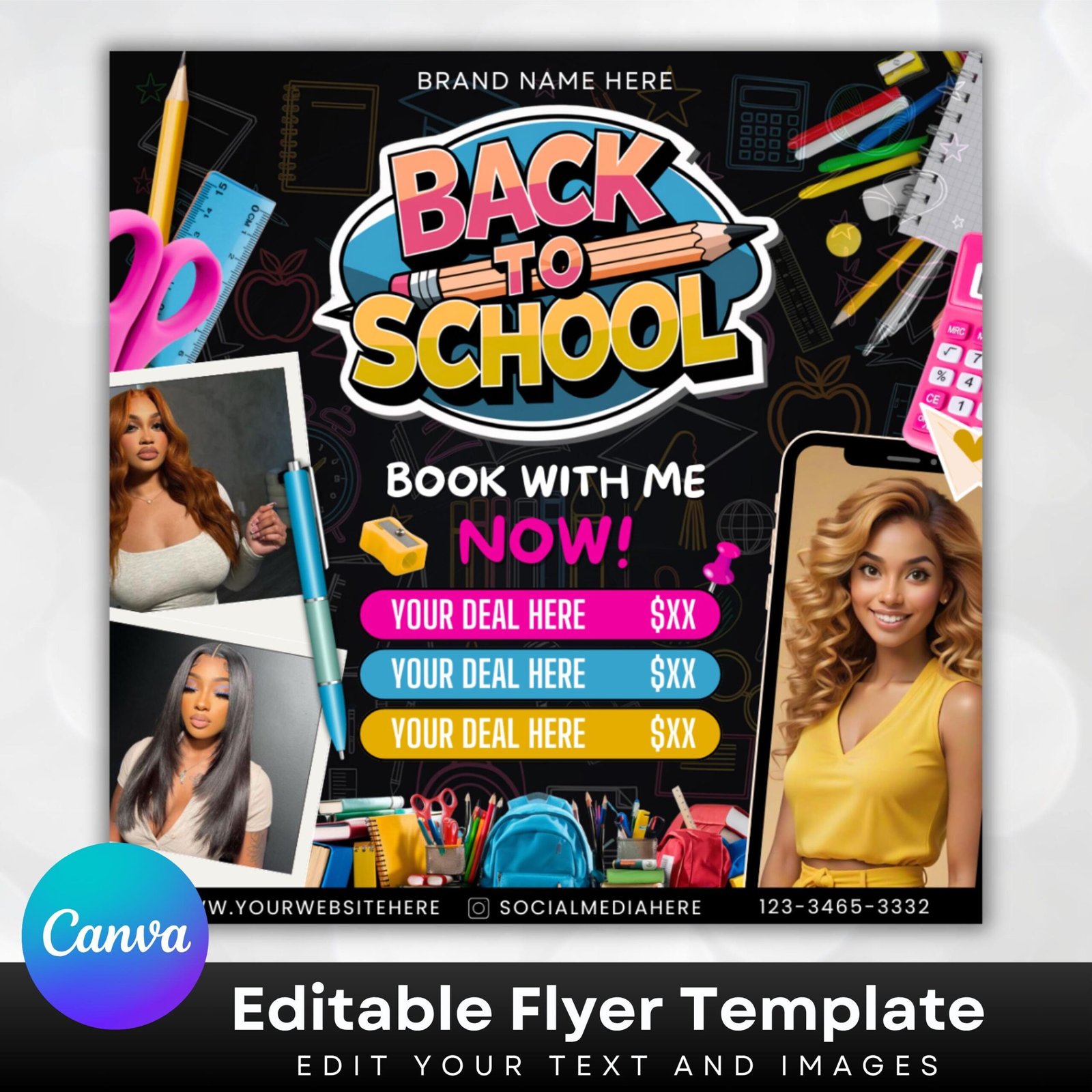 Back To School Flyer, Back to school sale flyer, Back to school Hair flyer, DIY canva template, Back 2 School Flyer, Braid Special Flyer