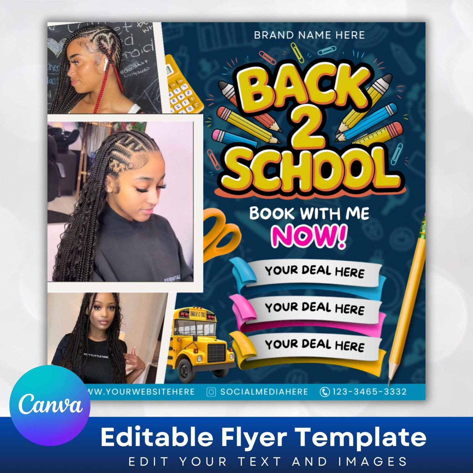 Back To School Flyer, Back to school sale flyer, Back to school Hair flyer, DIY canva template, Back 2 School Flyer, Braid Special Flyer