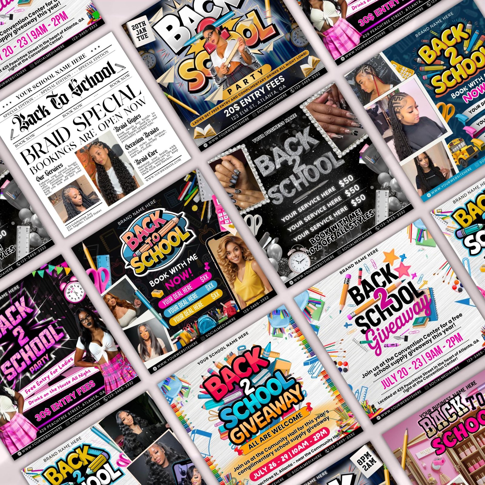 Back to School Flyer Bundle, All in One Bundle Back to School Sale Flyer, Back to School Hair, Nail, Braids Soecial Flyer,Diy Flyer Template
