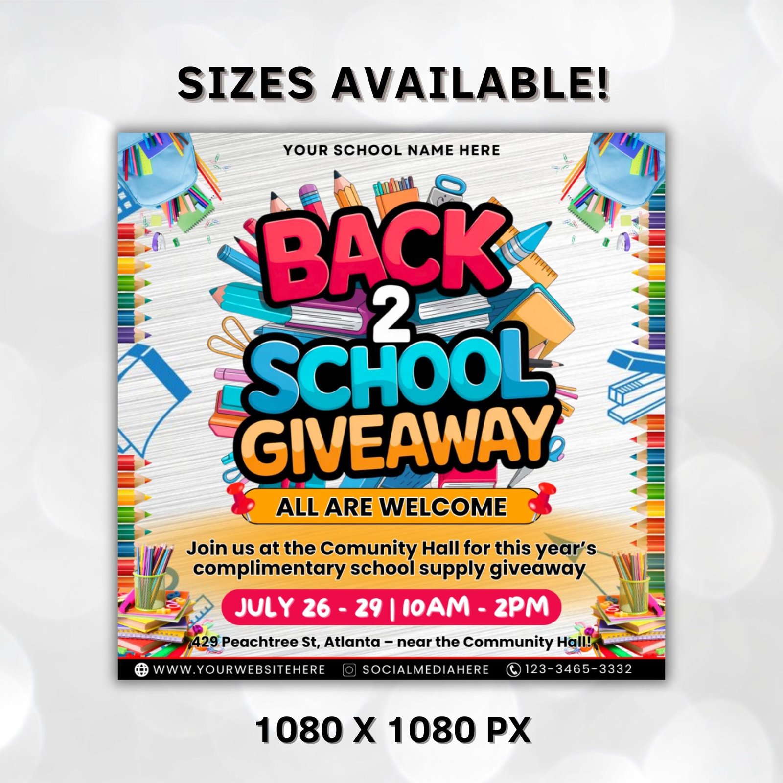 Back To School Flyer Giveaway Flyer, Back to school Supplies flyer, DIY canva template, Back 2 School Flyer, Giveaway Special Flyer Canva