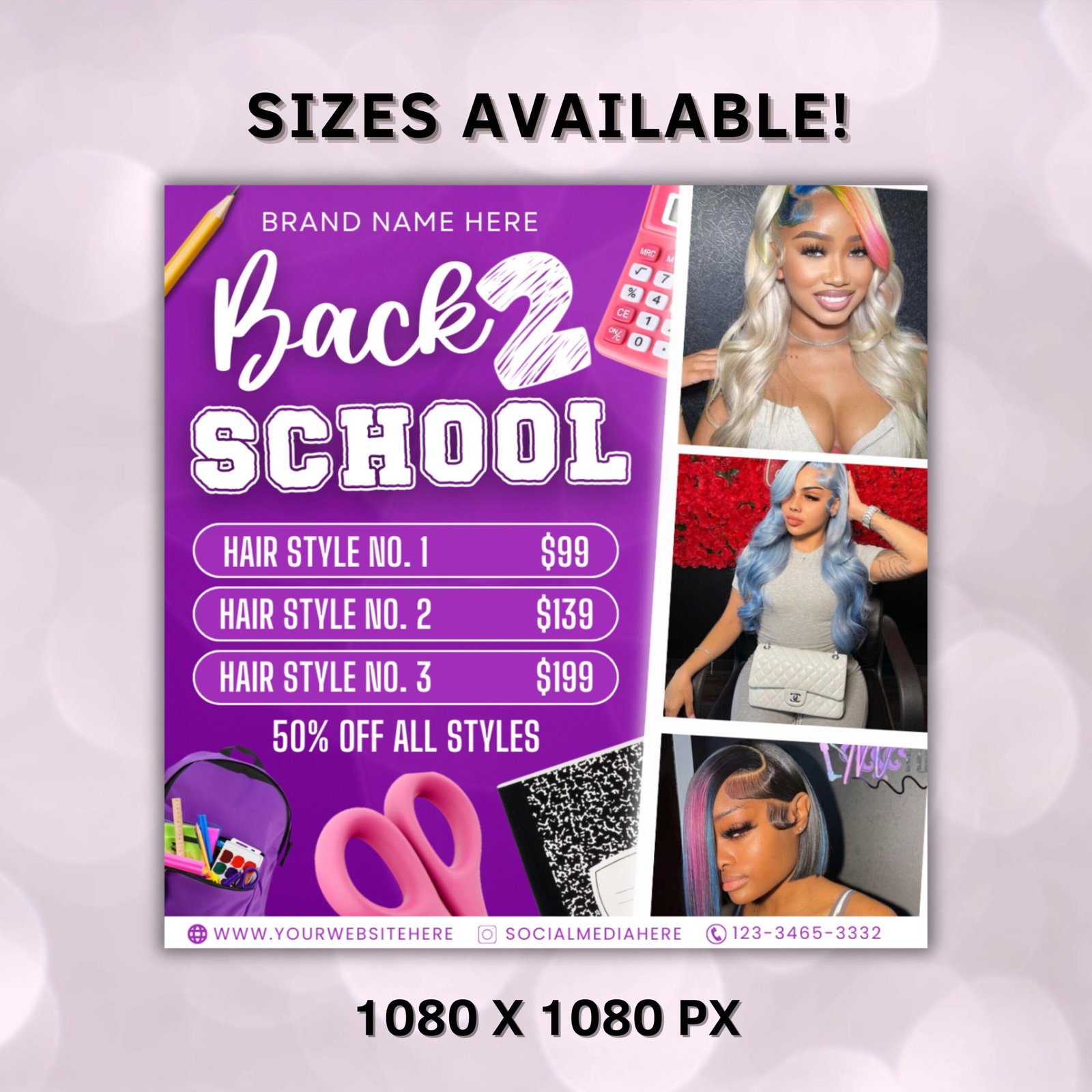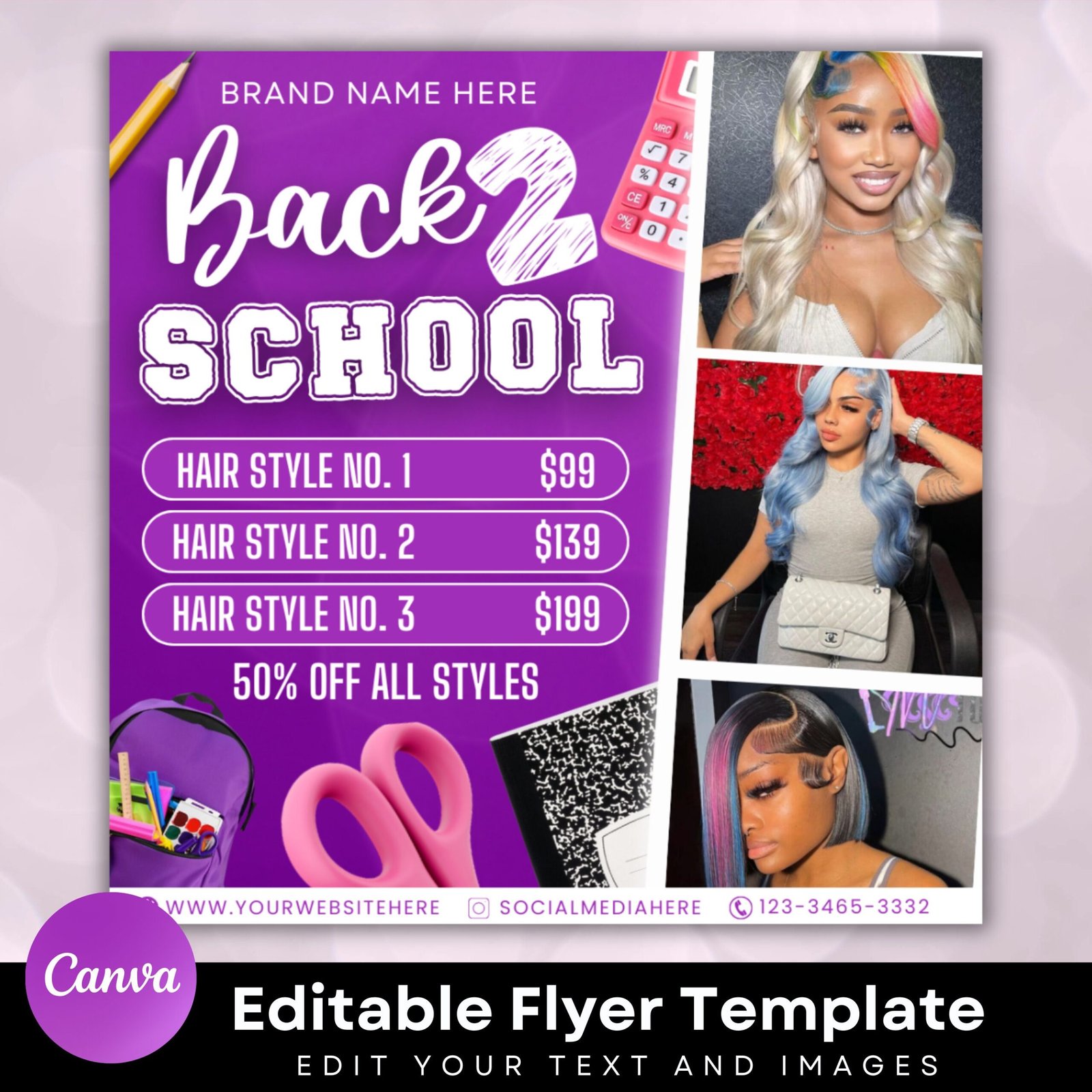 Back To School Flyer,Purple Back to school sale flyer Back to school Hair flyer,DIY canva template, Back 2 School Flyer, Braid Special Flyer