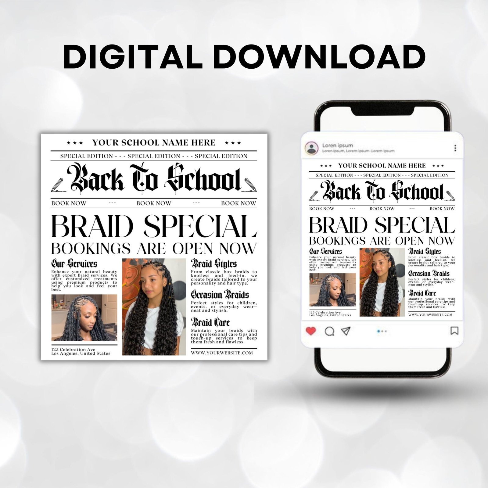 Back To School Newspaper Flyer, Back to school sale flyer, Back to school Hair flyer,canva template, Back 2 School Flyer,Braid Special Flyer