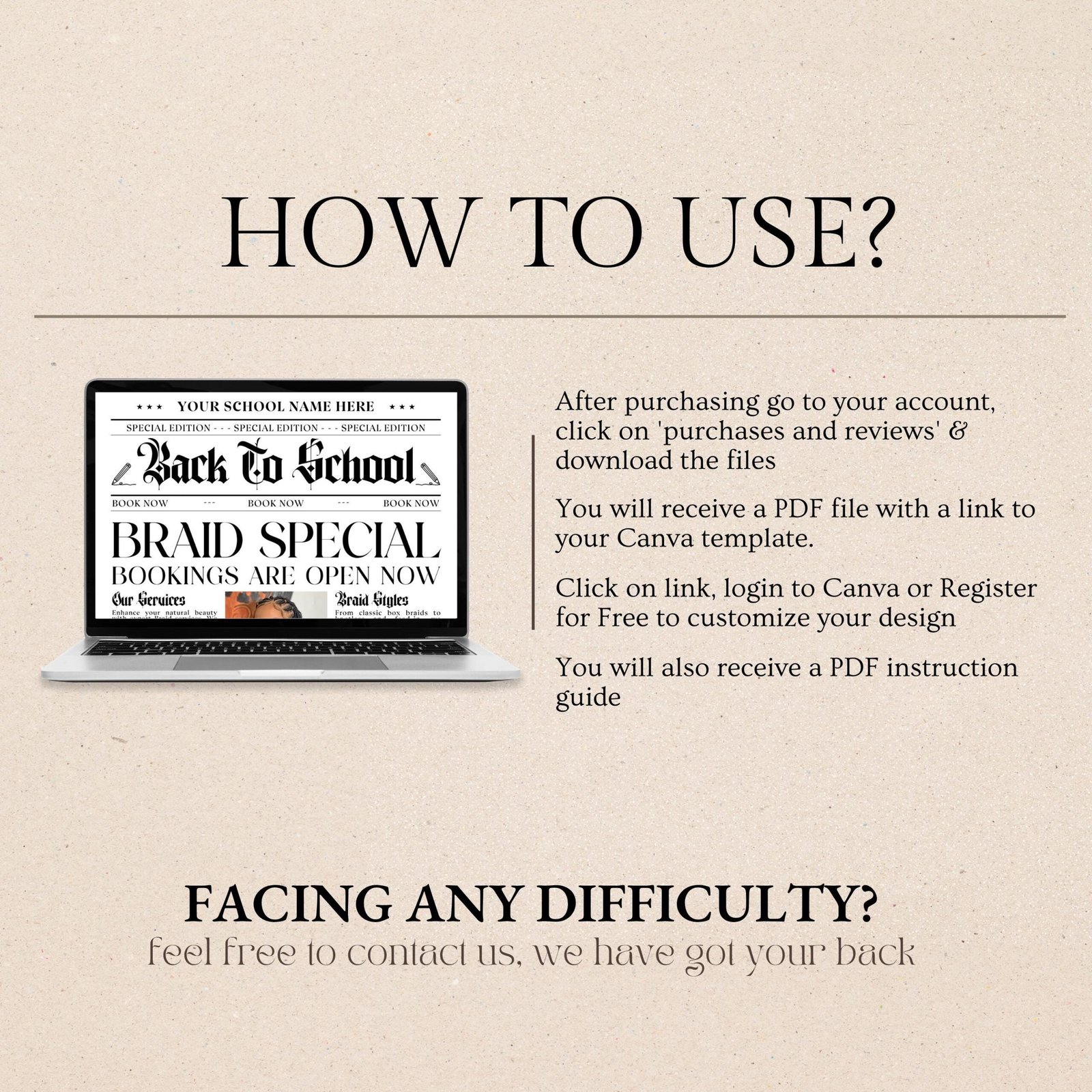 Purchase & Access – After payment, you’ll receive an email with a link to your editable design (sent to your Etsy-registered email).