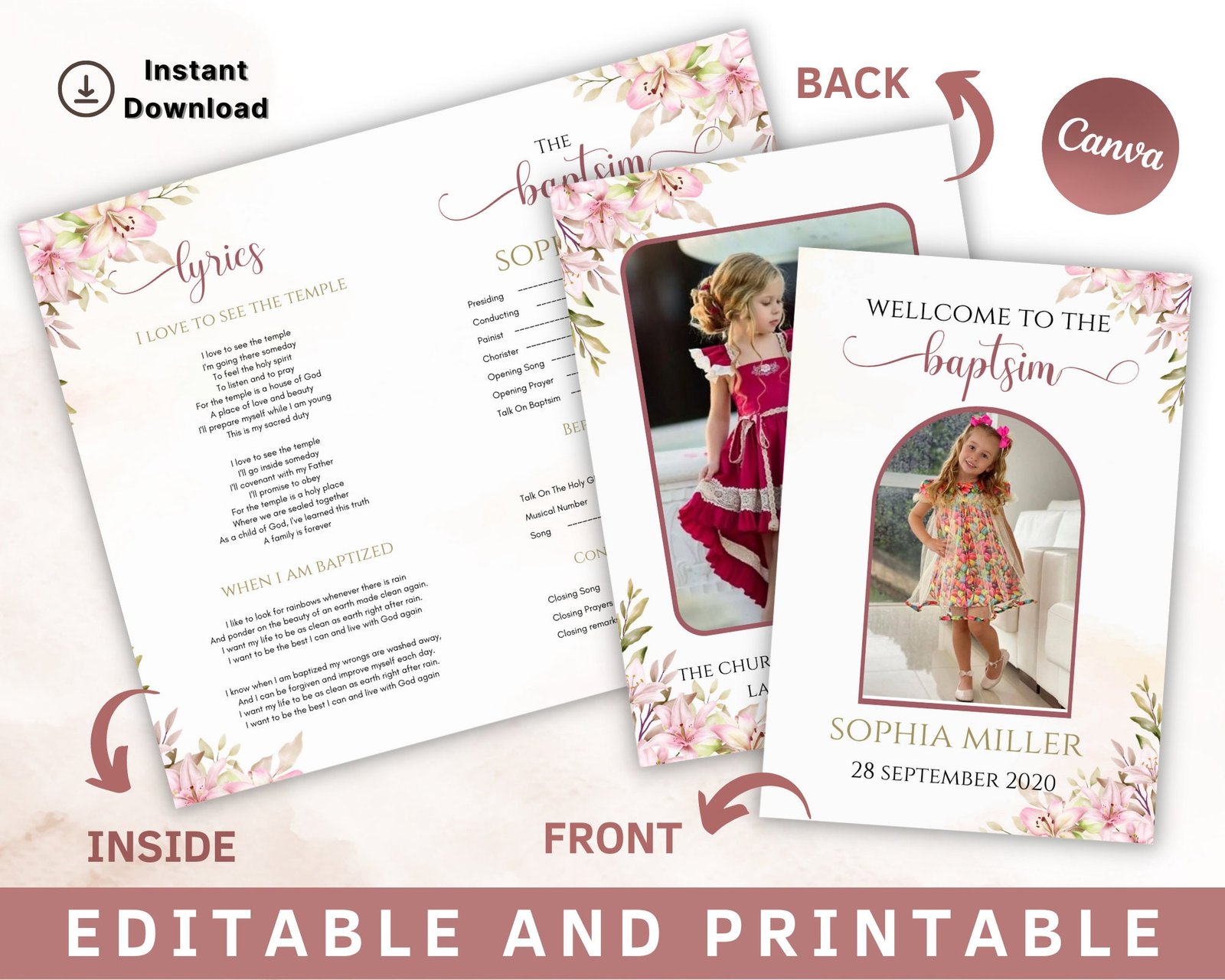 Baptism program lds, editable lds baptism program template, lds baptism program, baptism programs, customizable template, instant download