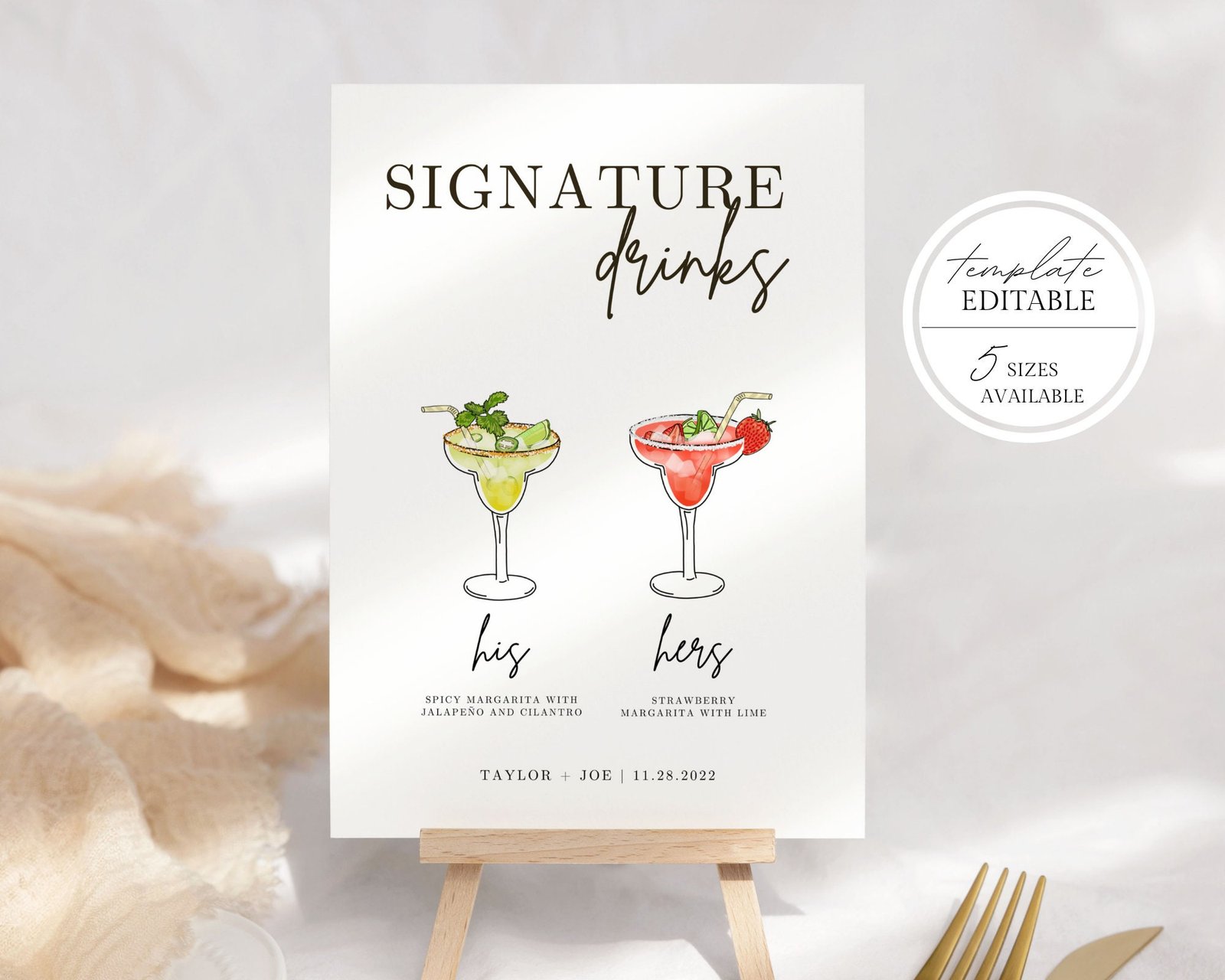 Bar menu signature drink sign! hers and his – bar menu sign, dog signature drink sign, bar sign for wedding and special events.