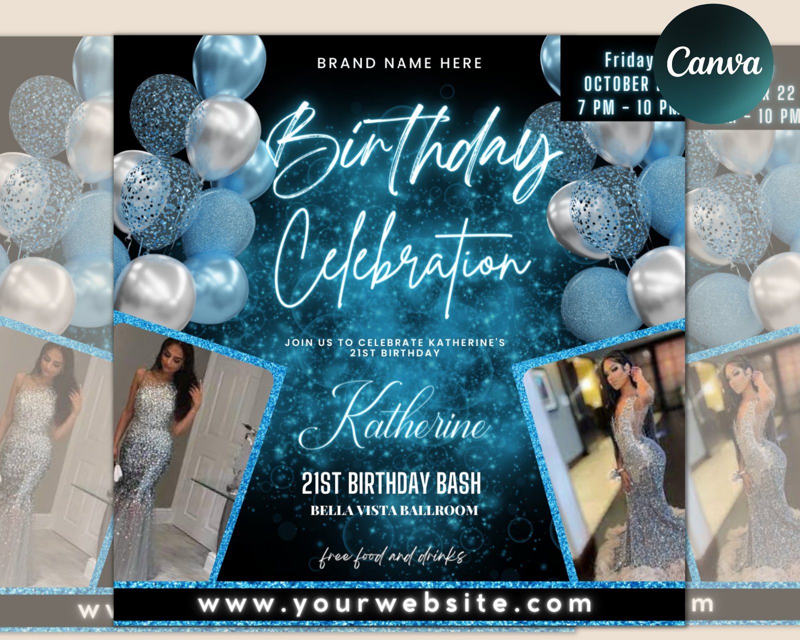 Birthday Celebration Flyer Template Birthday Flyer Girl, Birthday Flyer, | DIY Bday Invitation Hair Lash Nails Editable Canva Flyer