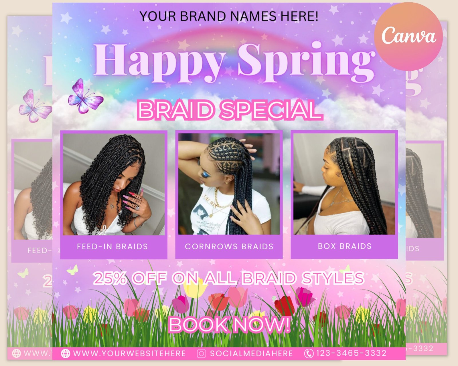 Braid special flyer, spring sale flyer, braids flyer, wig flyer, salon flyer, makeup flyer beauty flyer, book now flyer, social media flyer