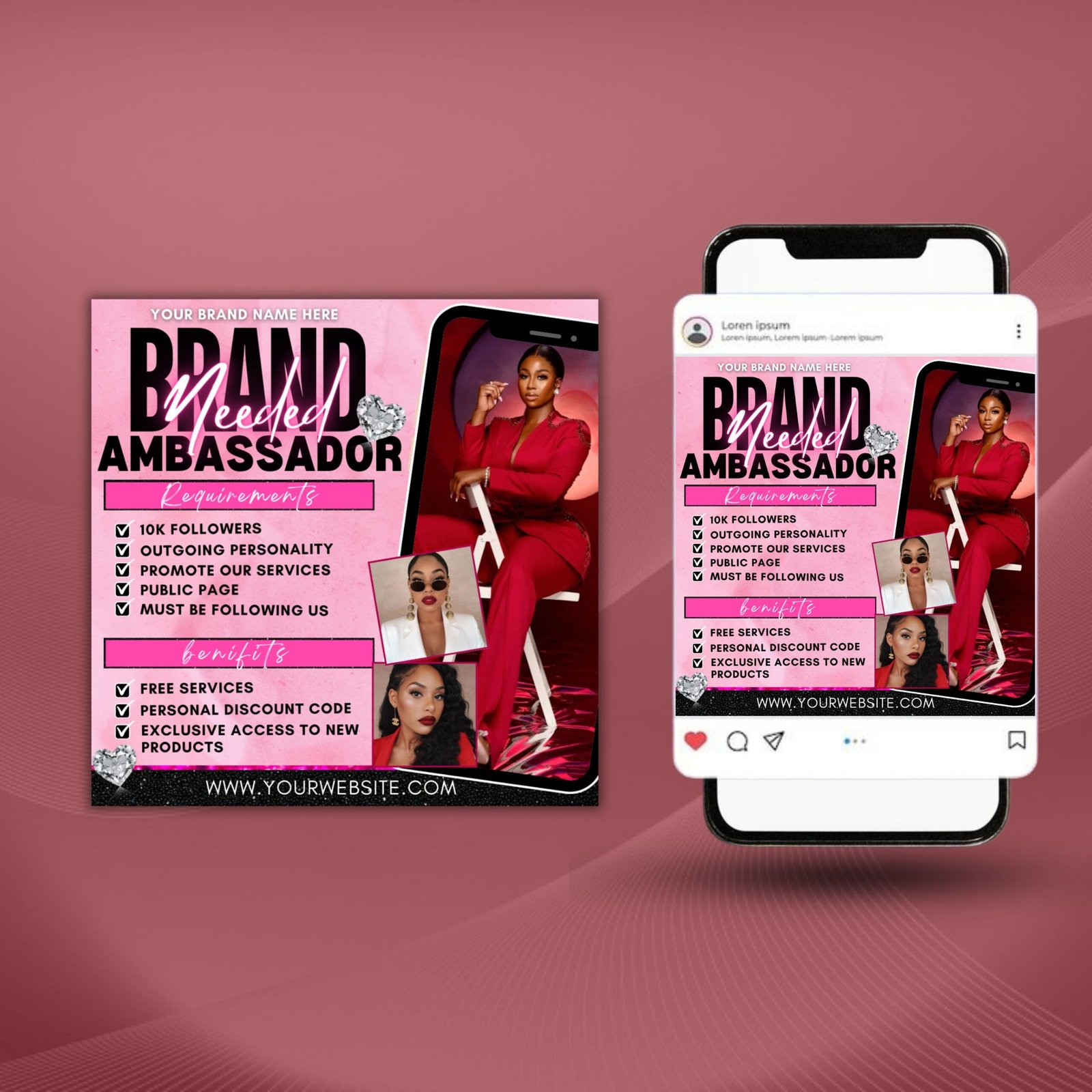 Brand Ambassador Flyer, Brand Ambassador Needed Flyer Editable Canva Template For Model, Hair, Makeup, lashes, Nails, Clothing Brand