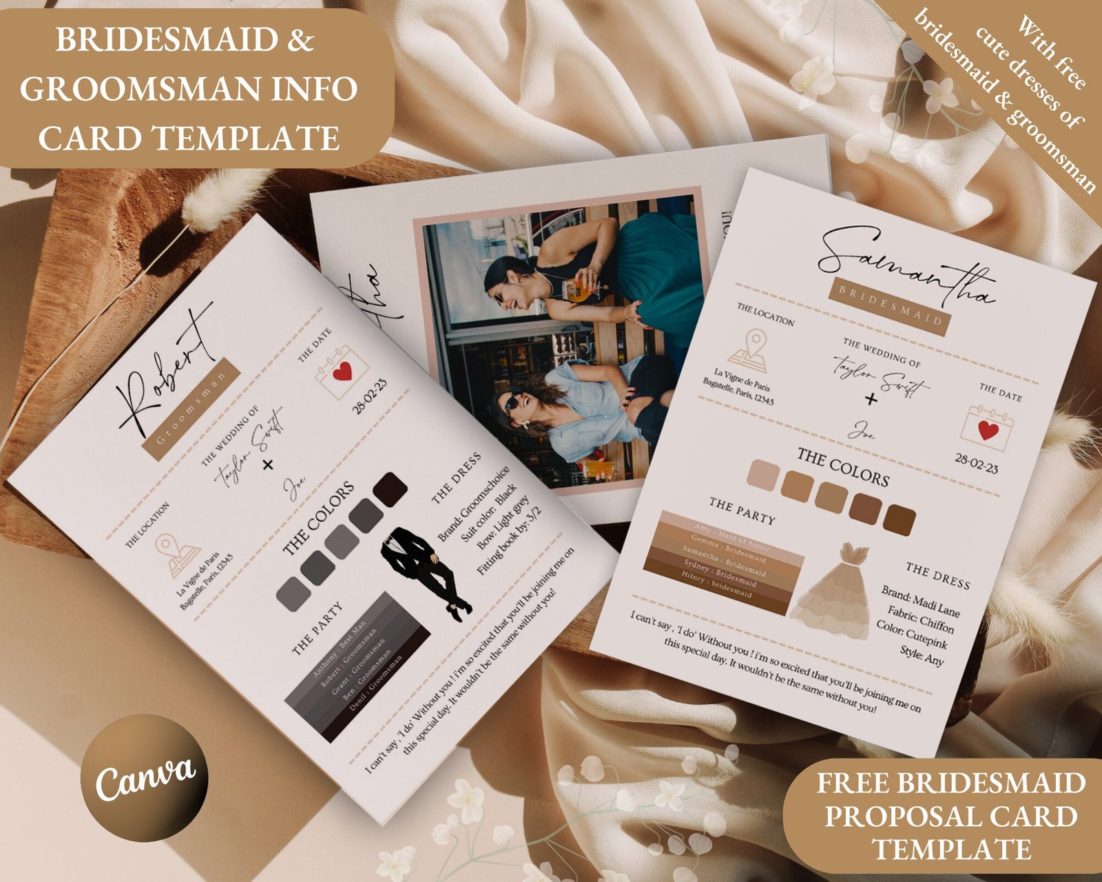 Bridesmaid info card template, bridal party info card, bridesmaid info card template editable with canva, customizable bridal party info