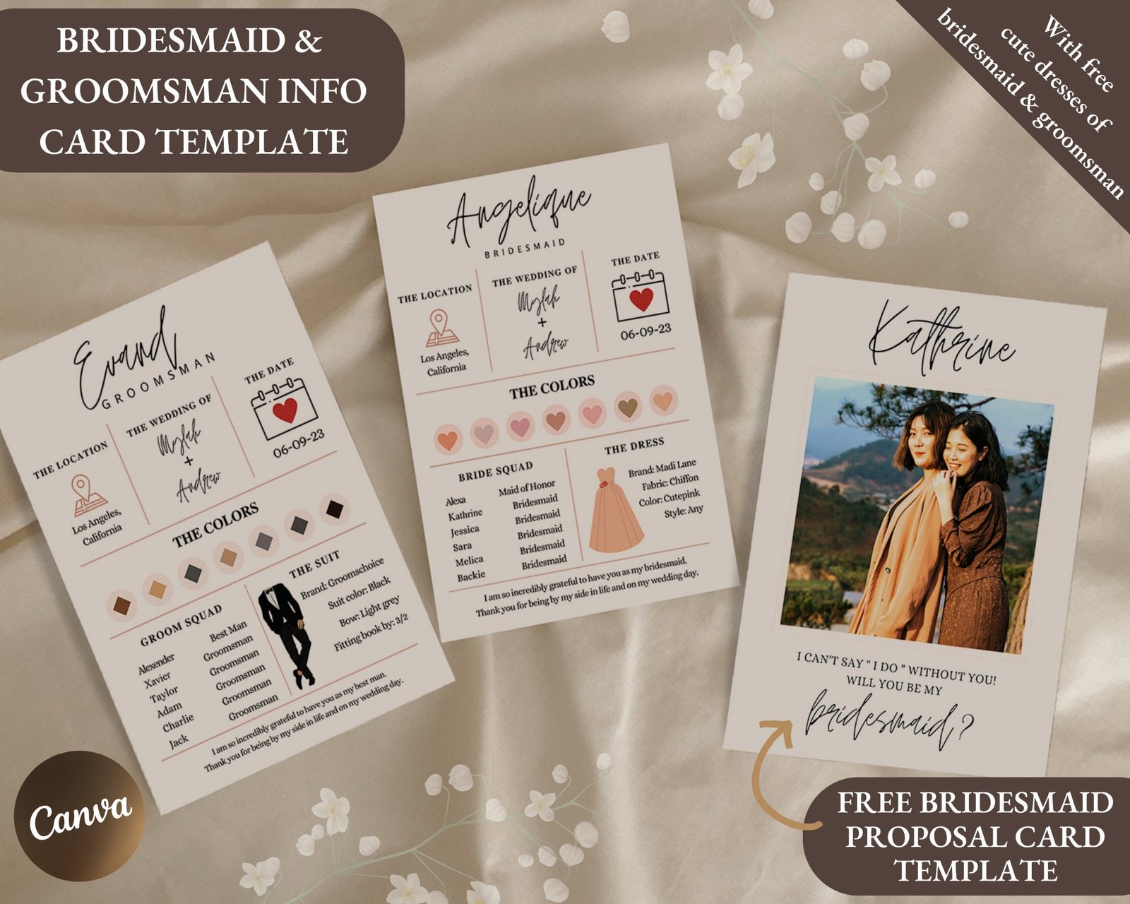 Canva editable bridesmaid info card, bridesmaid proposal card canva template, bridal party info card, bridesmaid detail information card