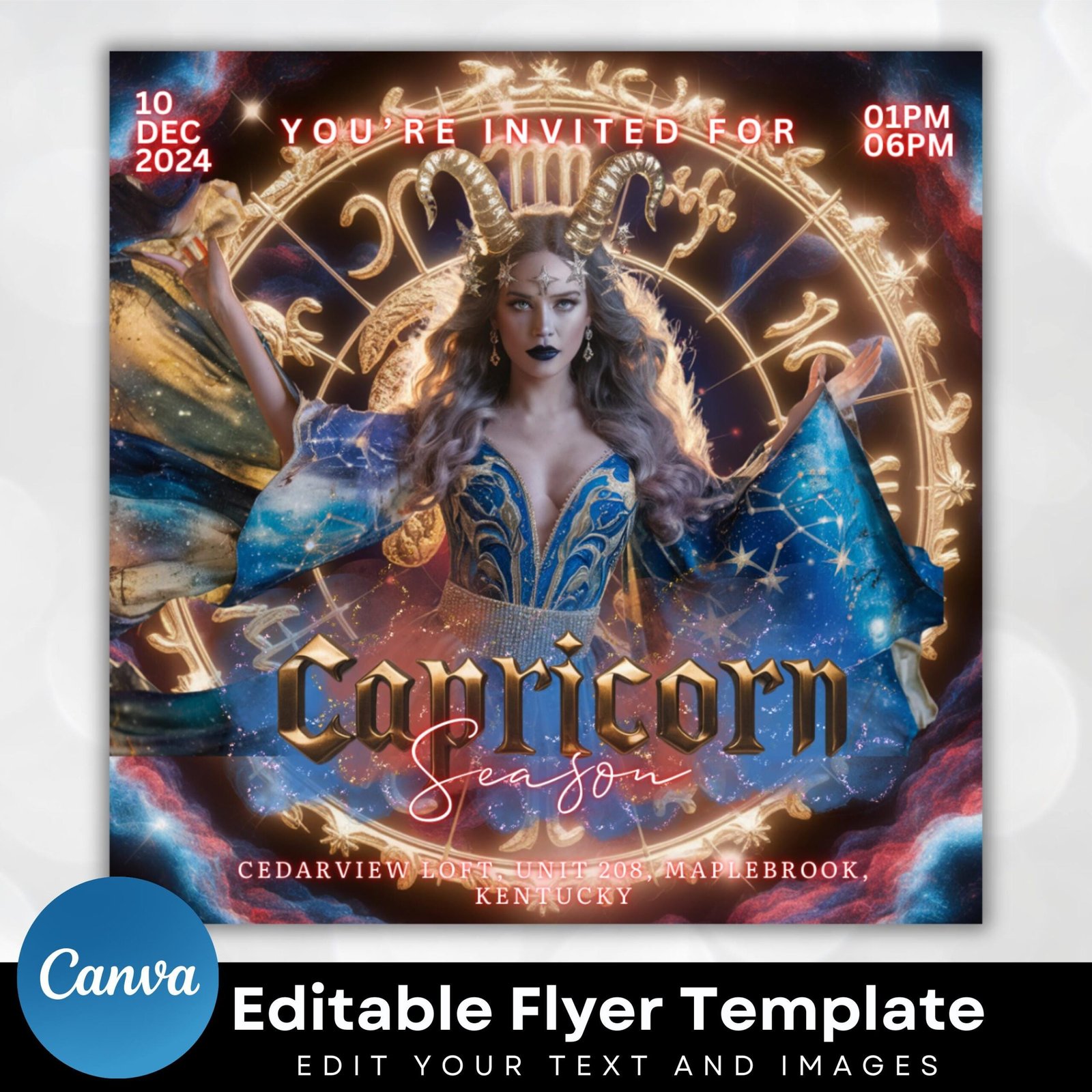 Capricorn Birthday Flyer, Birthday Girl, Happy Birthday Flyer, Capricorn Season, Capricorn Party Flyer, Celebration Flyer, Canva Editable