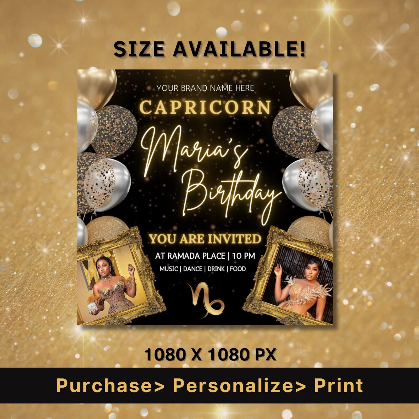 Capricorn Birthday Flyer, Birthday Template, Birthday Girl, Party Flyer, Celebration Flyer, Birthday Event, Birthday Invite, Capricorn