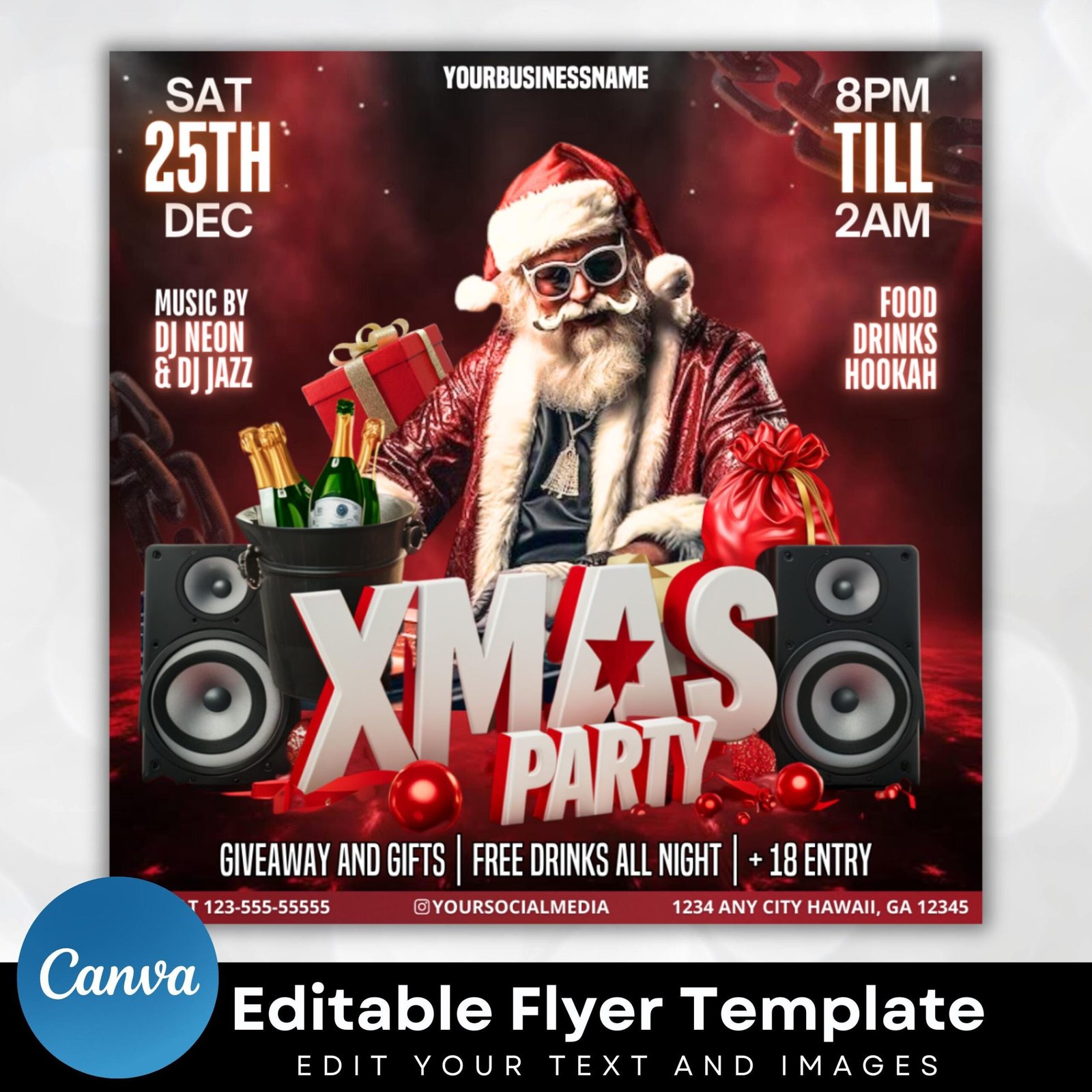 Christmas Flyer, Christmas Club Flyer Template,Christmas Party Flyer,Christmas Party Invite,Dj Party Flyer, Holiday Party Flyer, canva