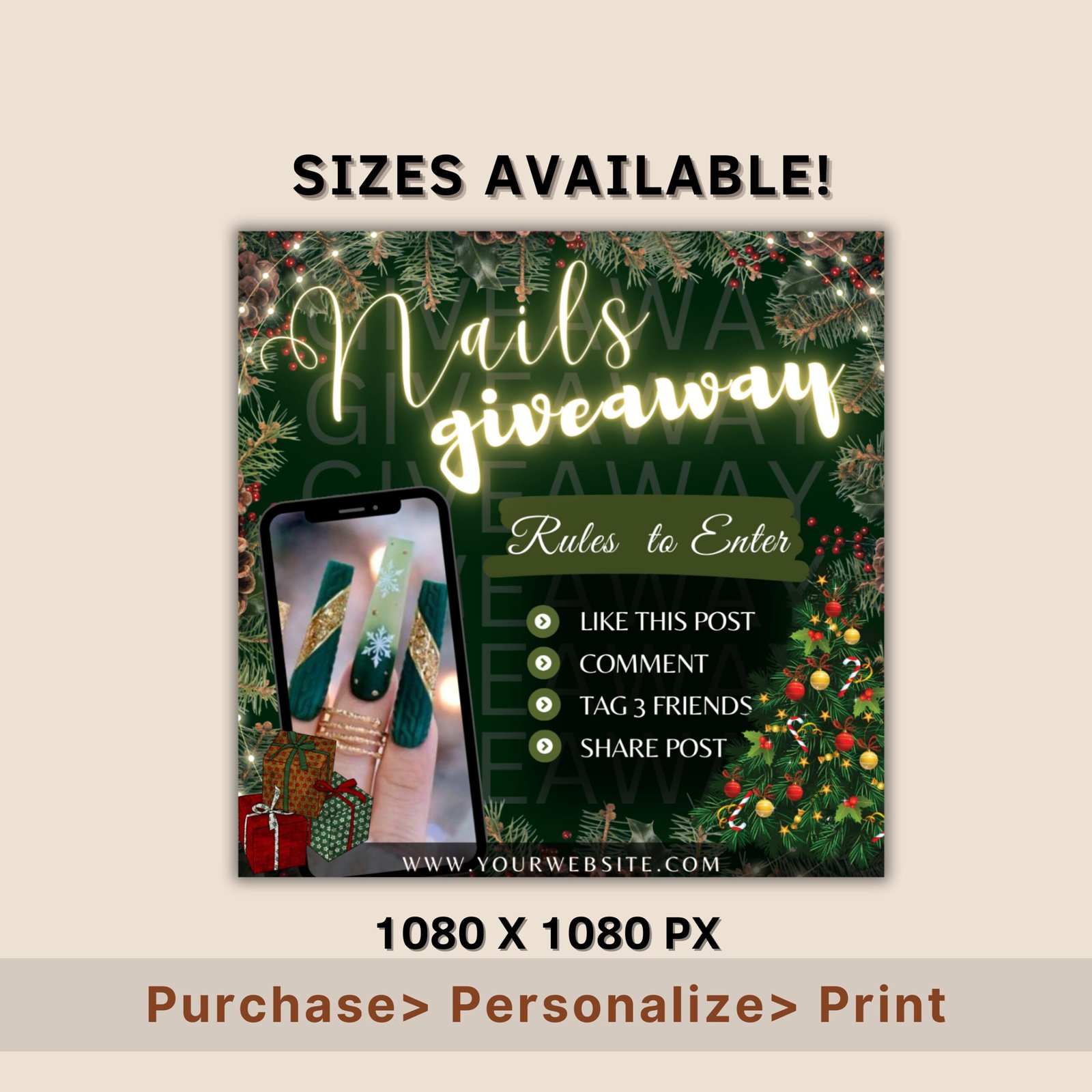 Christmas Giveaway Flyer, Nail Flyer Marketing, Beauty Flyer, Social Media Flyer, Editable Post, Holiday Nail Giveaway Flyer