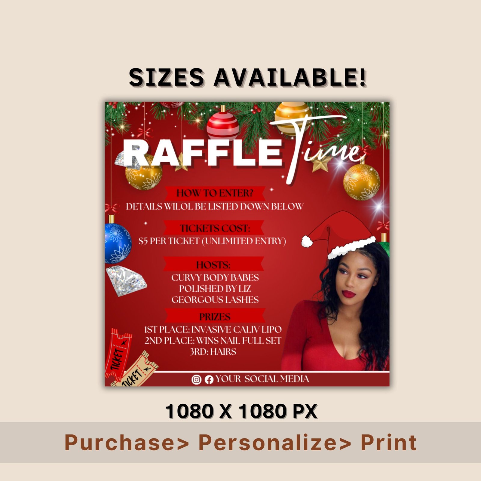 Christmas Raffle Flyer, Christmas Flyer, DIY Flyer Design Template, Giveaway Flyer, Social Media Flyer, Premade Business Flyer