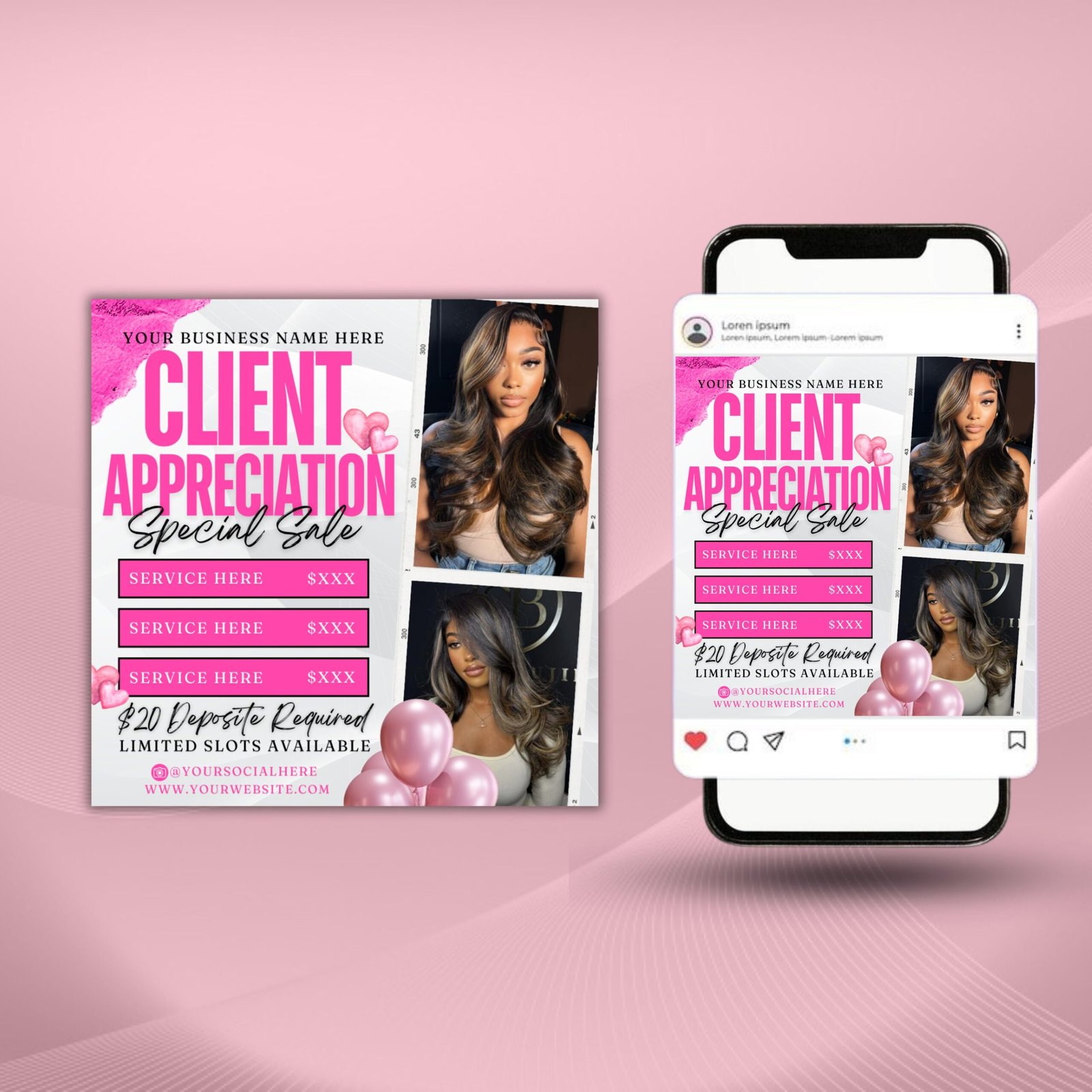 Client Appreciation Flyer, Client Appreciation Sale Flyer, Book Now Flyer, Hairstylist Flyer Nail Lash Tech, Wigs Braid Flyer Canva Template