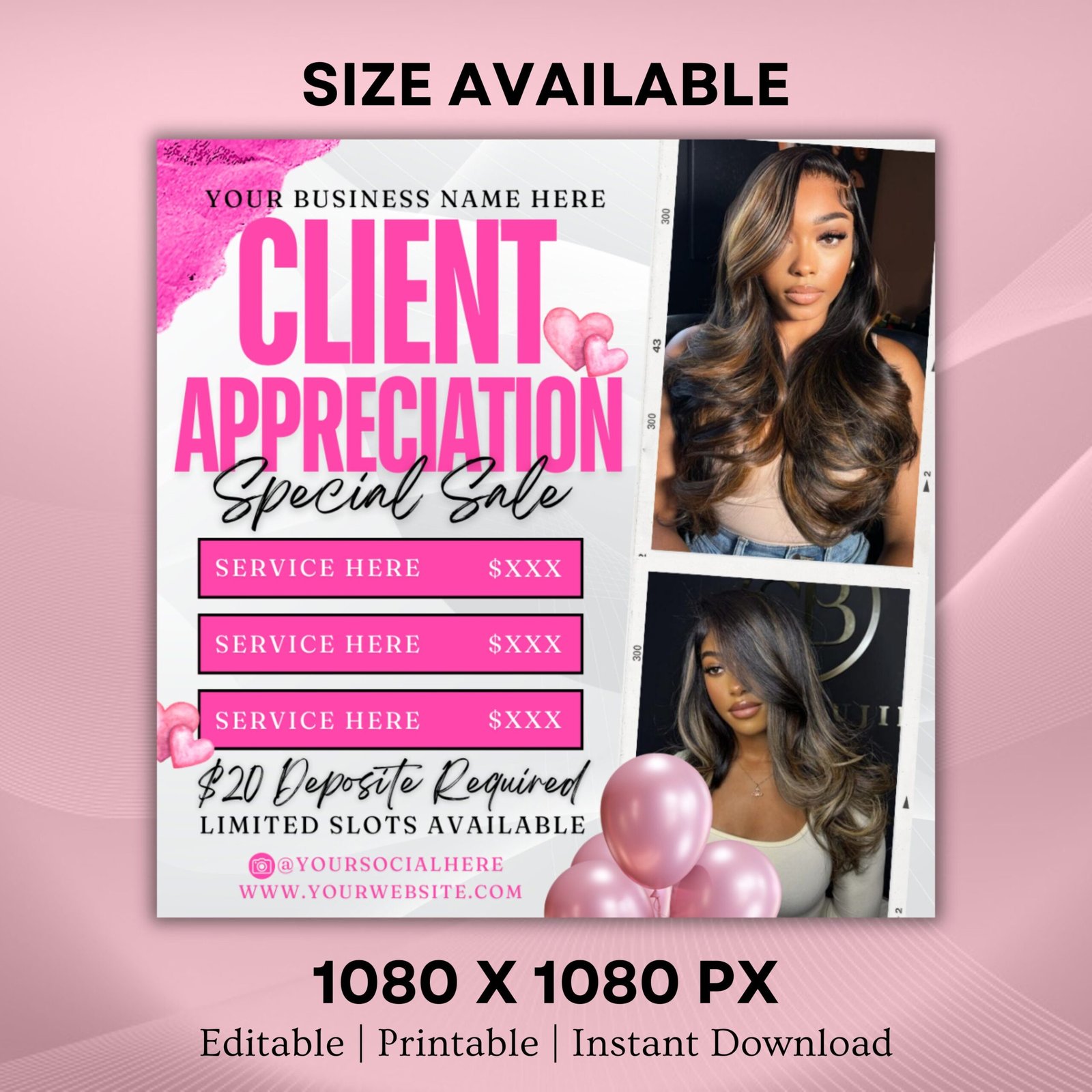 Customer Appreciation flyer, Client Appreciation Sale Flyer, Book Now Flyer, Hairstylist Flyer Nail Lash Tech,Wig Braid Flyer Canva Template