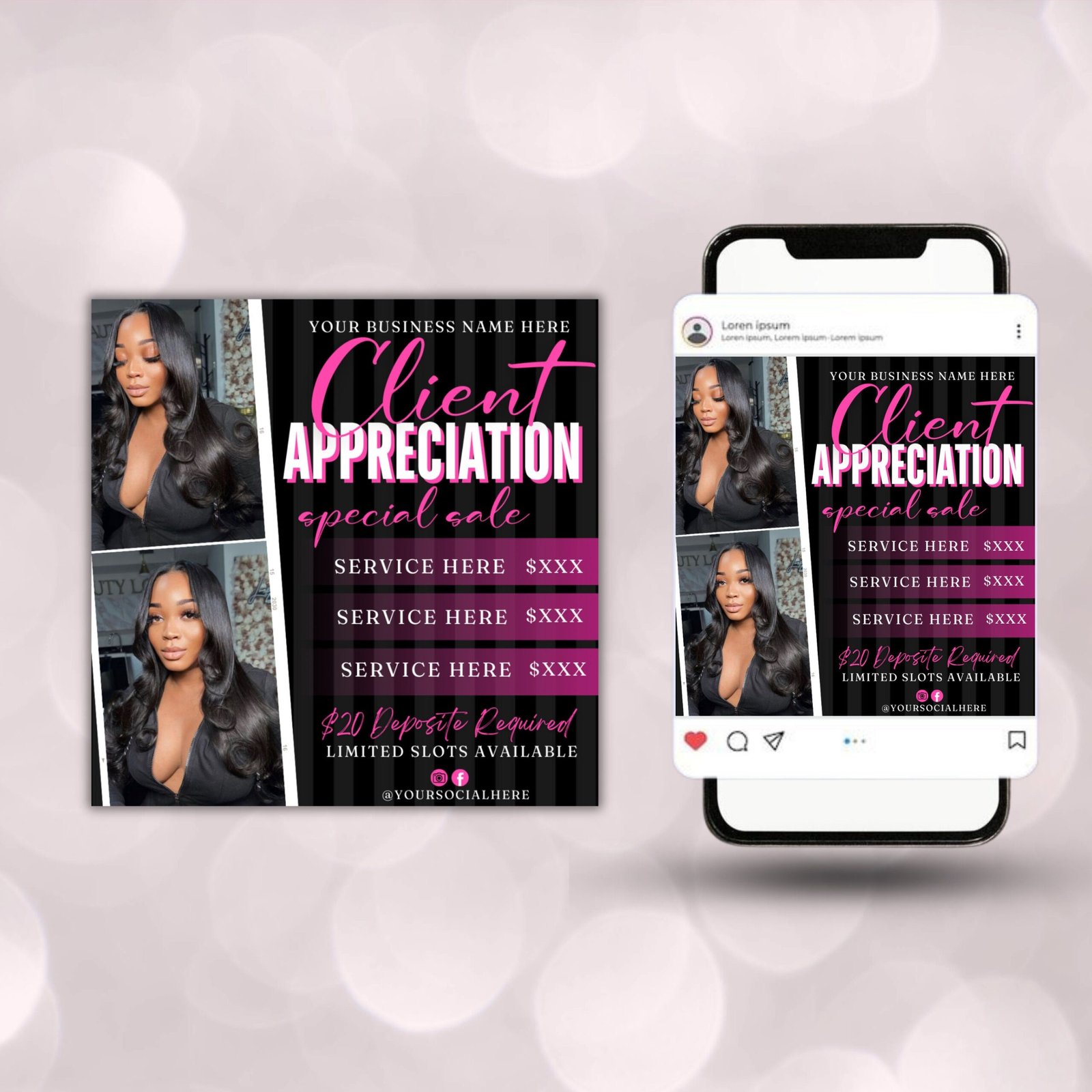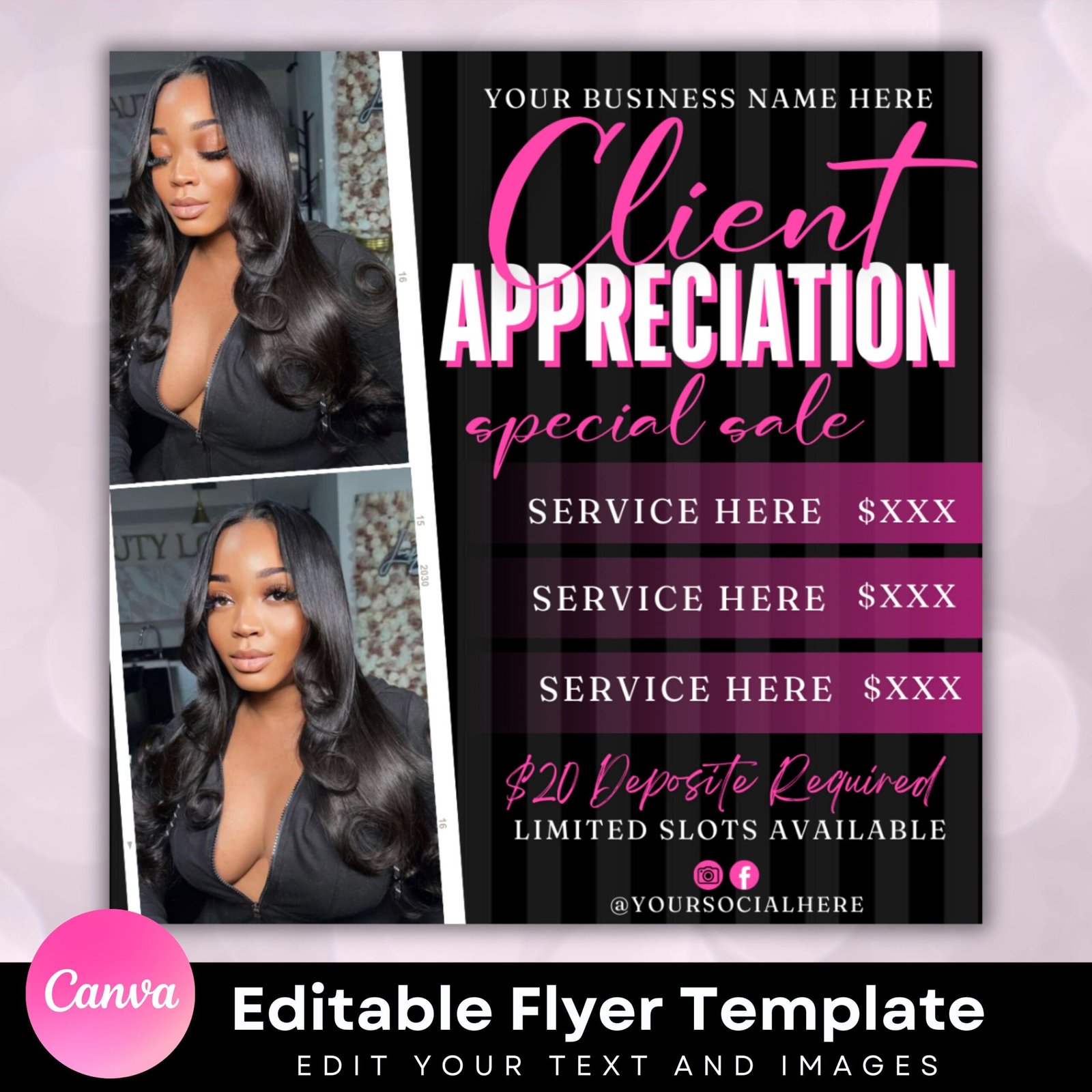 Client Appreciation Flyer, Client Appreciation Sale Flyer, Book Now Flyer, Hairstylist Flyer Nail Lash Tech, Wigs Braid Flyer Canva Template