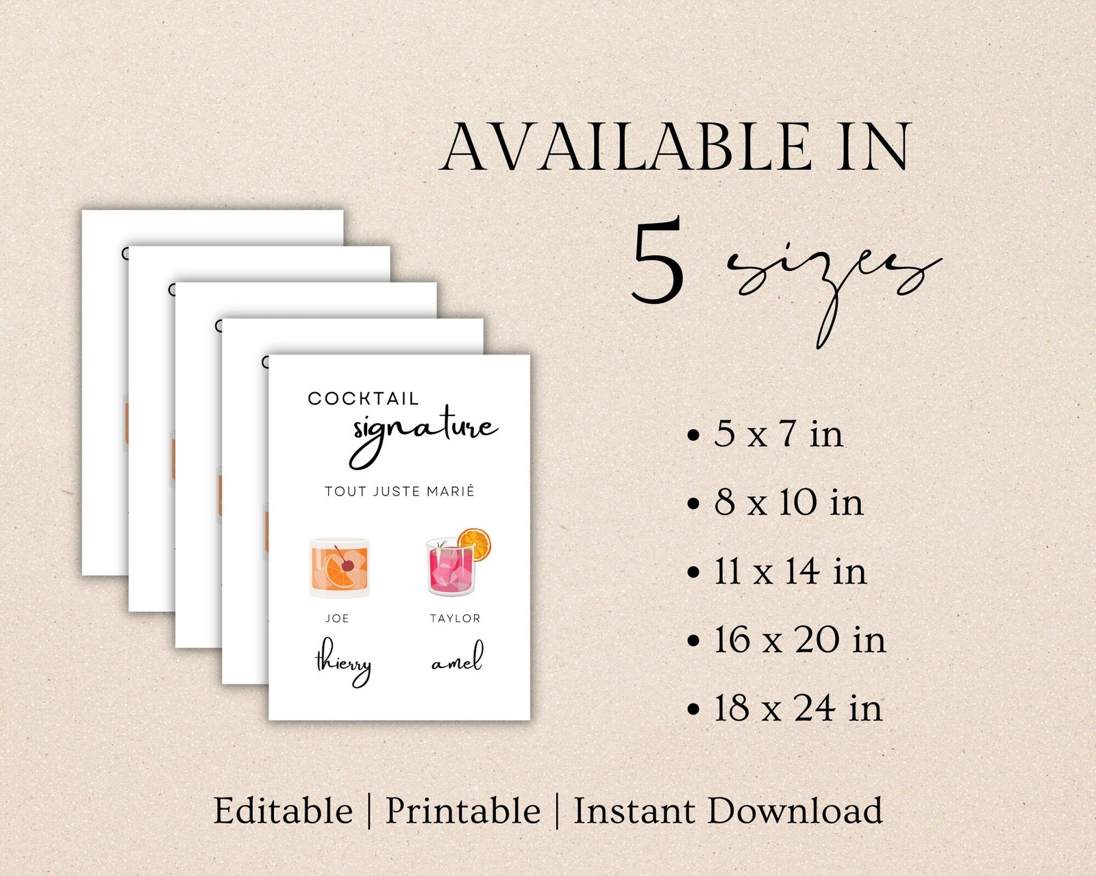 COCKTAIL SIGNATURE DRINK SIGN TEMPLATE, BAR SIGN SIGNATURE, SIGNATURE DRINK SIGN: