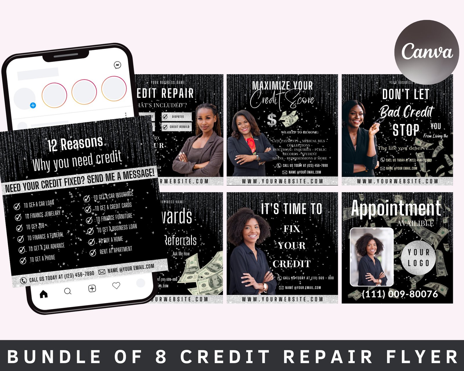 Credit repair flyer, diy flyer template design, editable flyer, consultation services flyers, canva credit repair flyer template