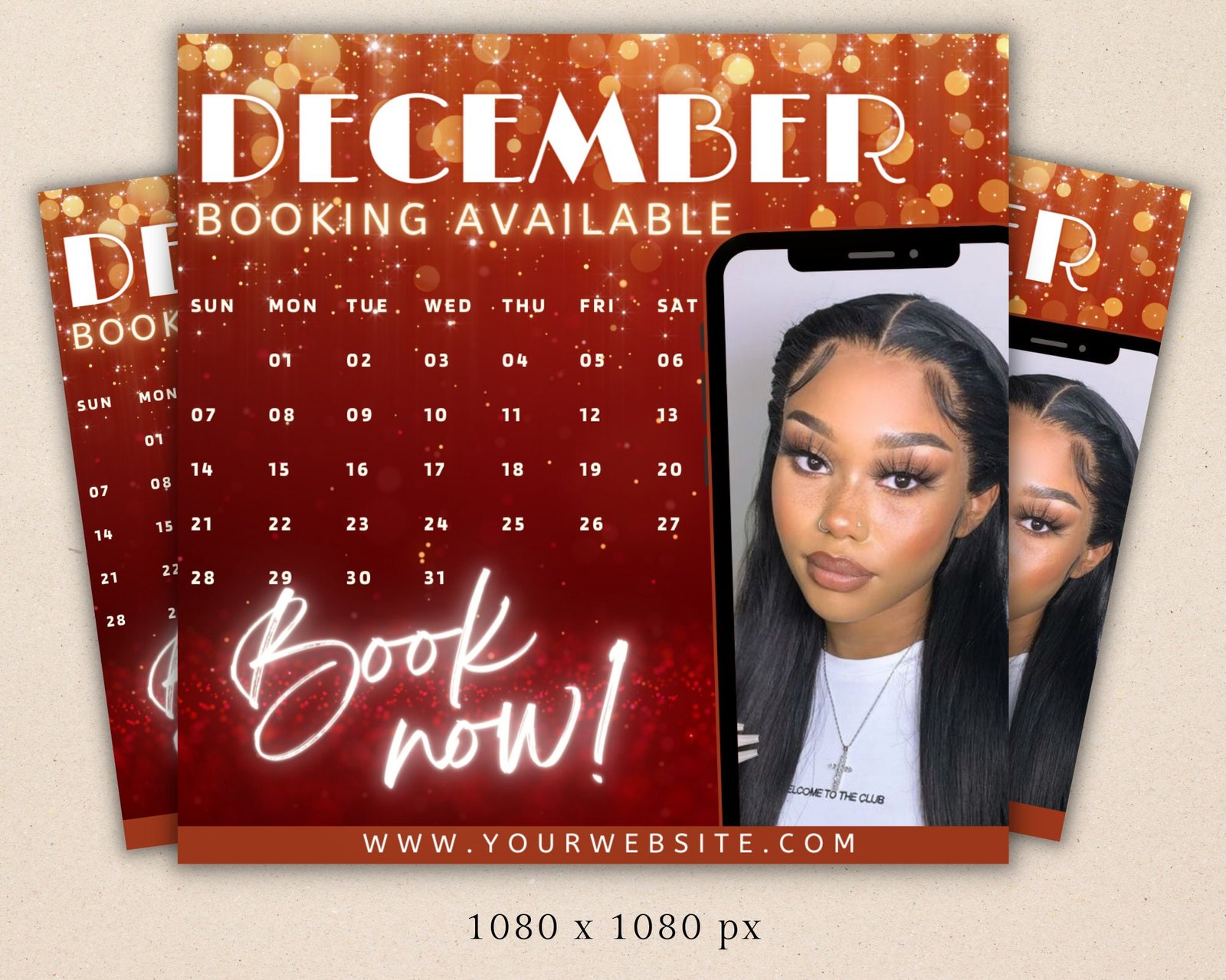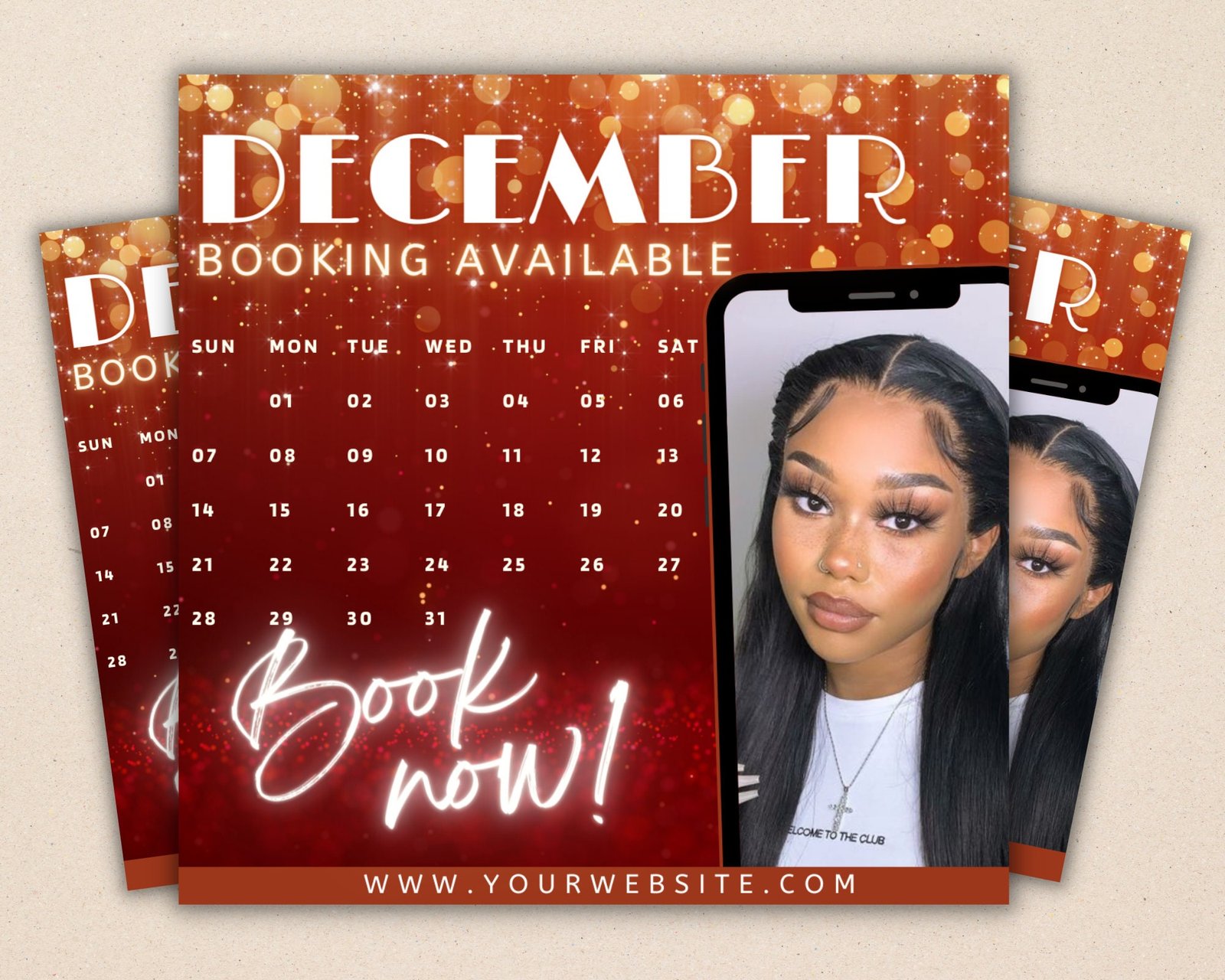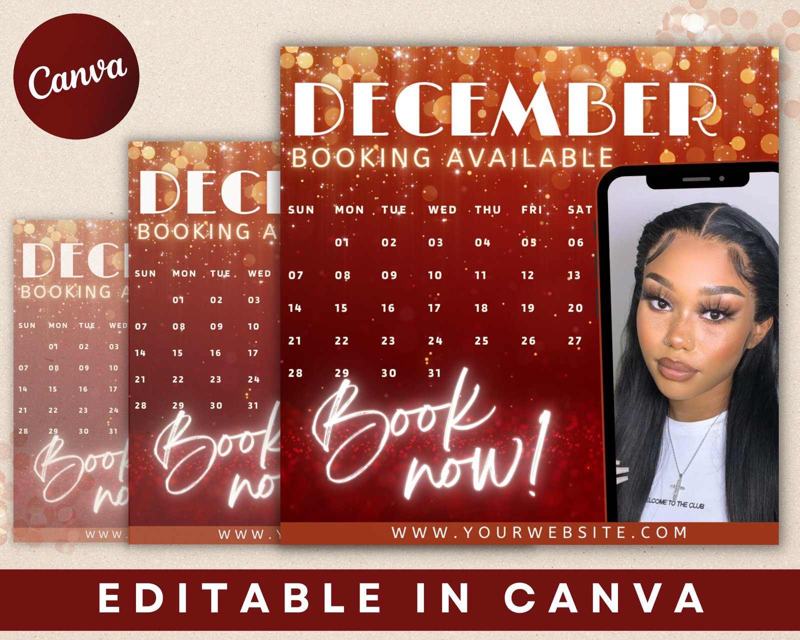 December Bookings Open Flyer, Christmas Flyer, Appointments Flyer, Available Flyer, Holiday Flyer, Makeup Flyer, Social Media Flyer