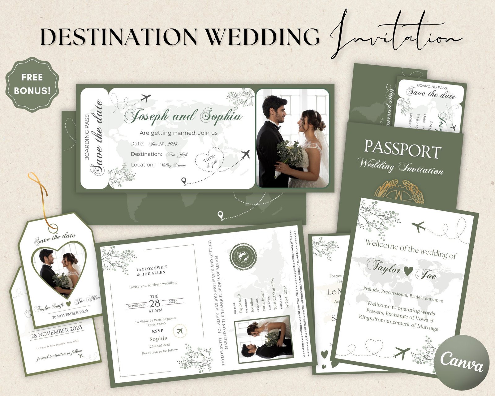 Destination Wedding Invitation, Boarding Pass Invitation, Printable Passport Wedding Invitation, Travel Theme Wedding, Travel Wedding Bundle