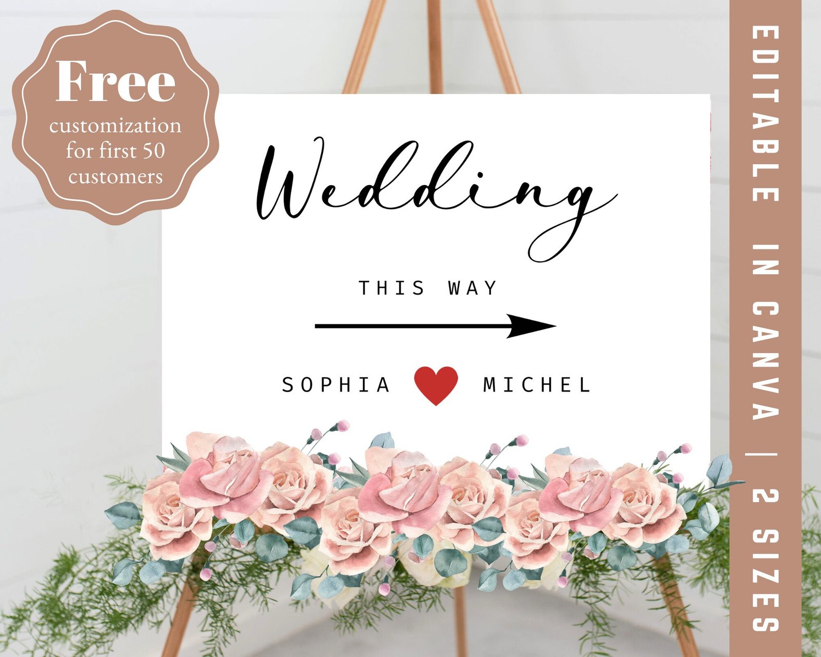Direction signs of wedding, wedding welcome sign, wedding sineage, welcome sign, welcome template, printable sign, reception ceremony