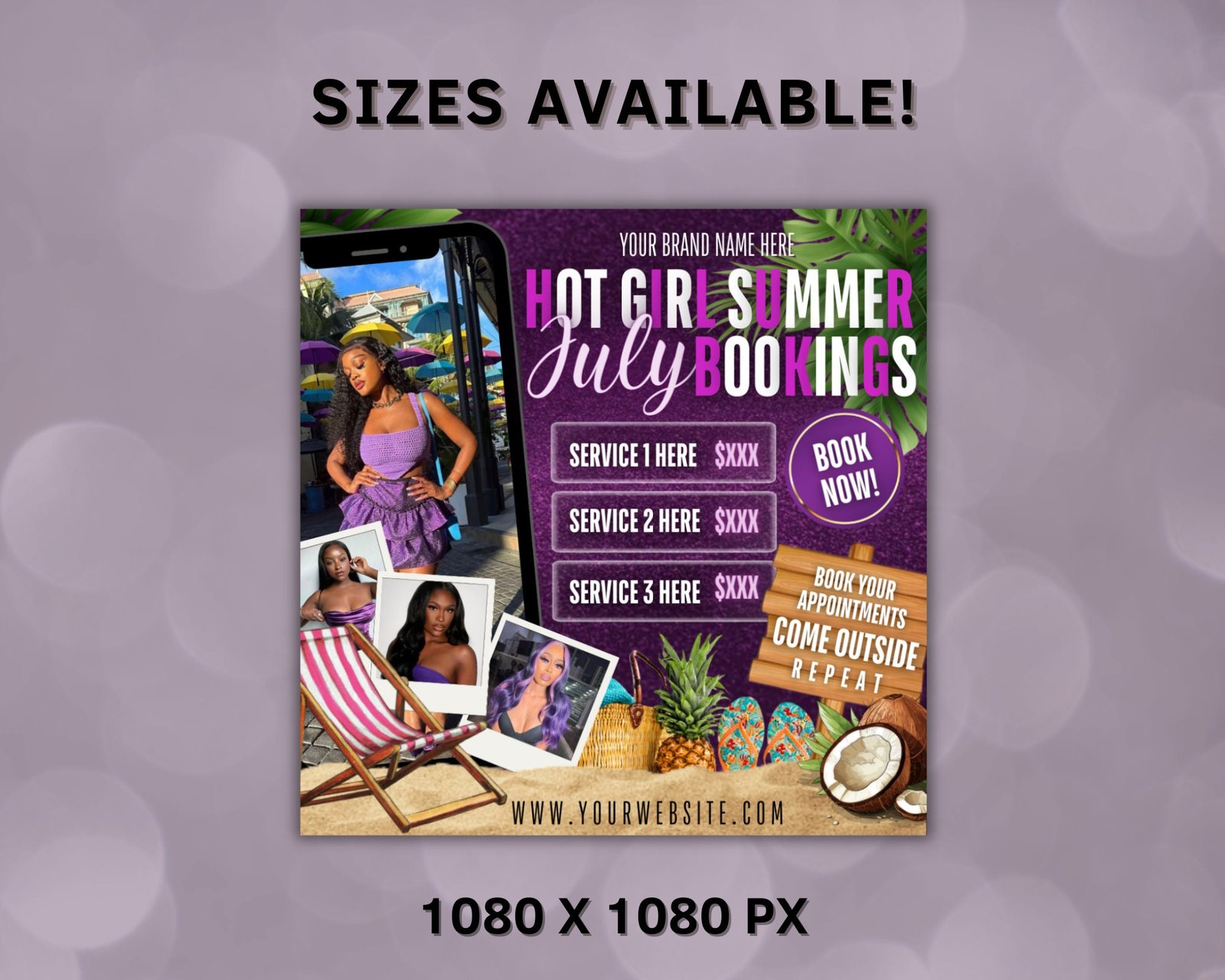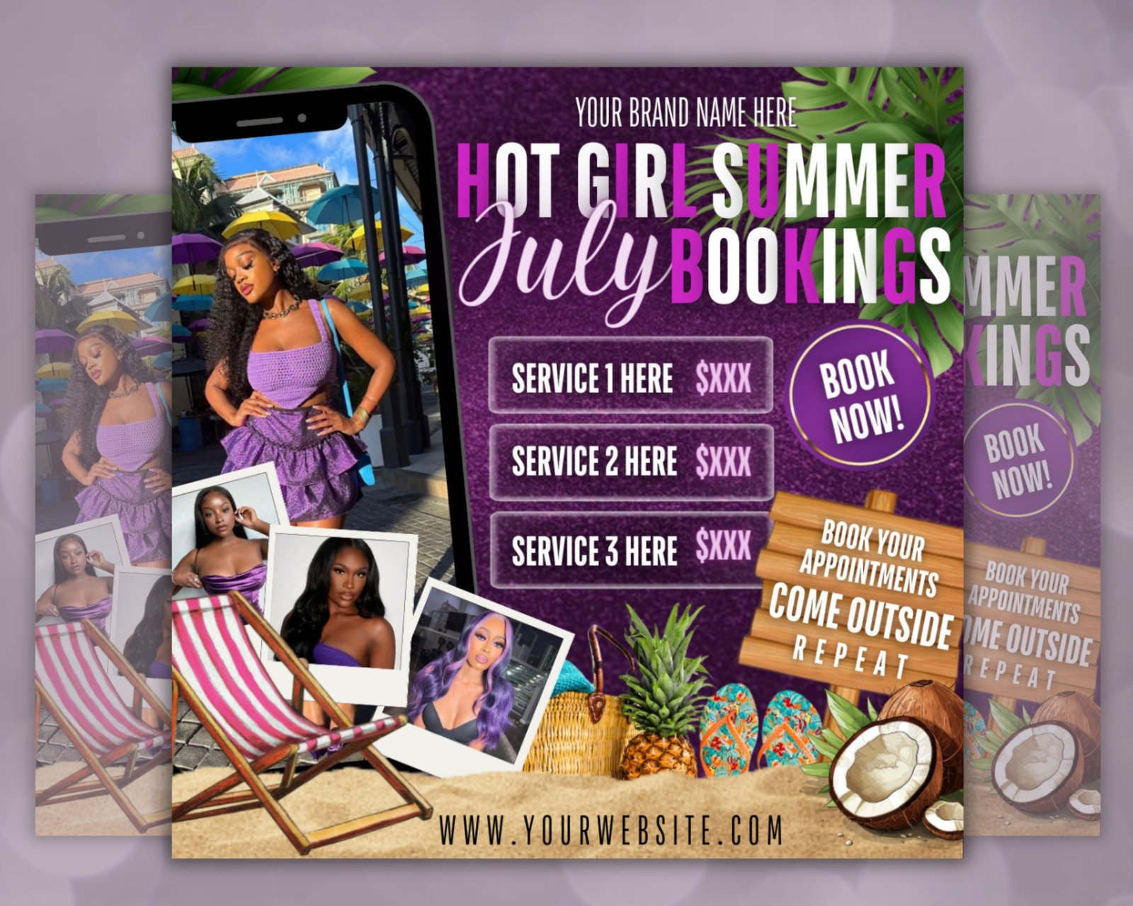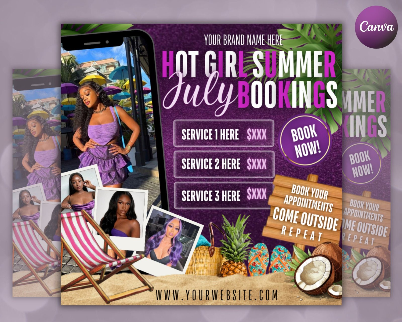 Diy Digital Download Purple July Bookings Flyer Canva Template, 4th of July Sale Flyer, Social Media Flyer, Business Flyer, Instant Download