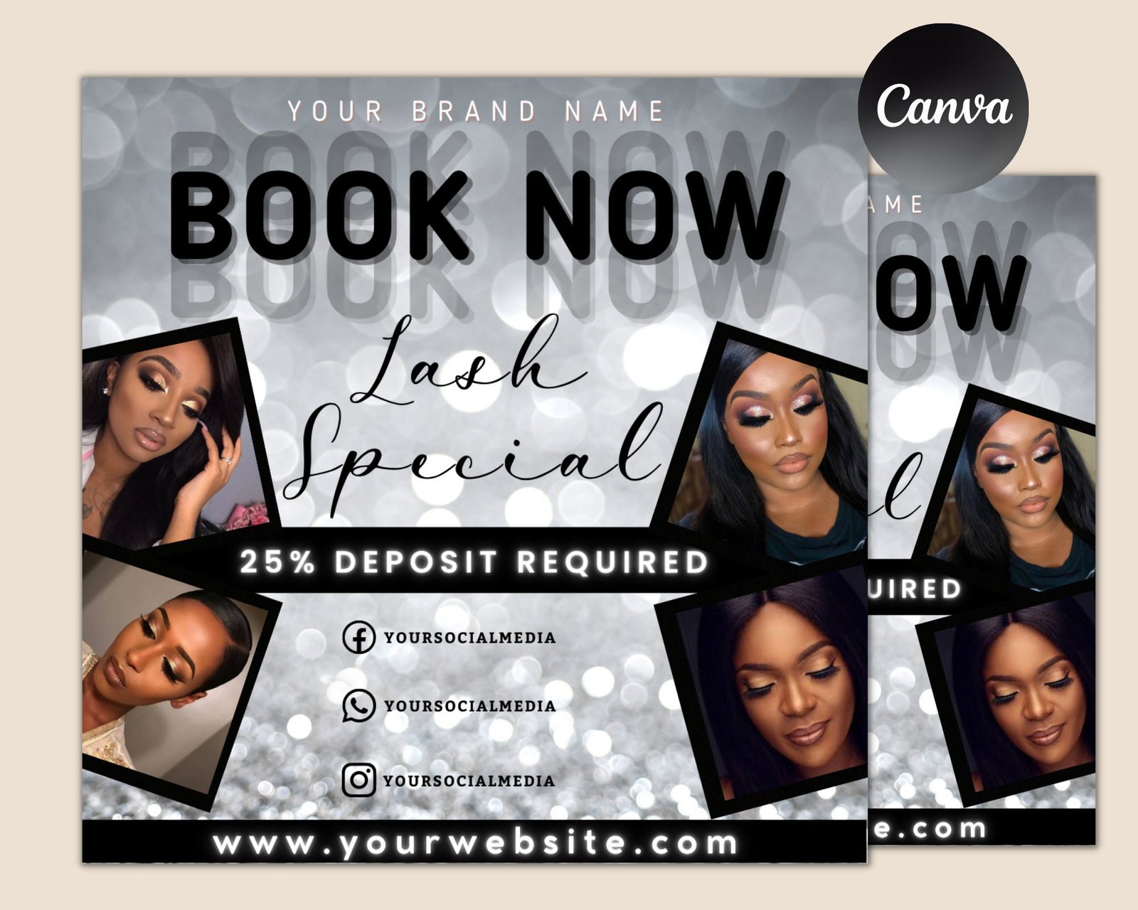 Diy lash deal flyer | lashes extensions makeup sale appointments mua social media instagram editable canva template