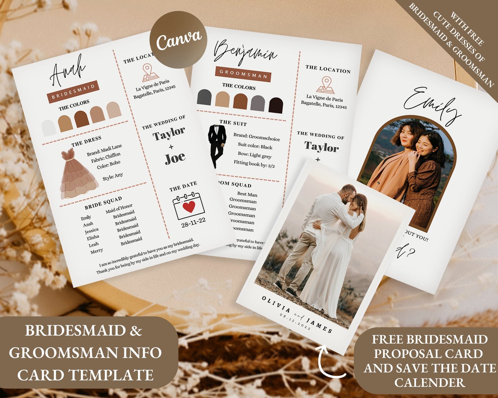 Editable bridesmaid info card template with canva, bridesmaid groomsman template, customizable bridal party info, bridesmaid proposal card