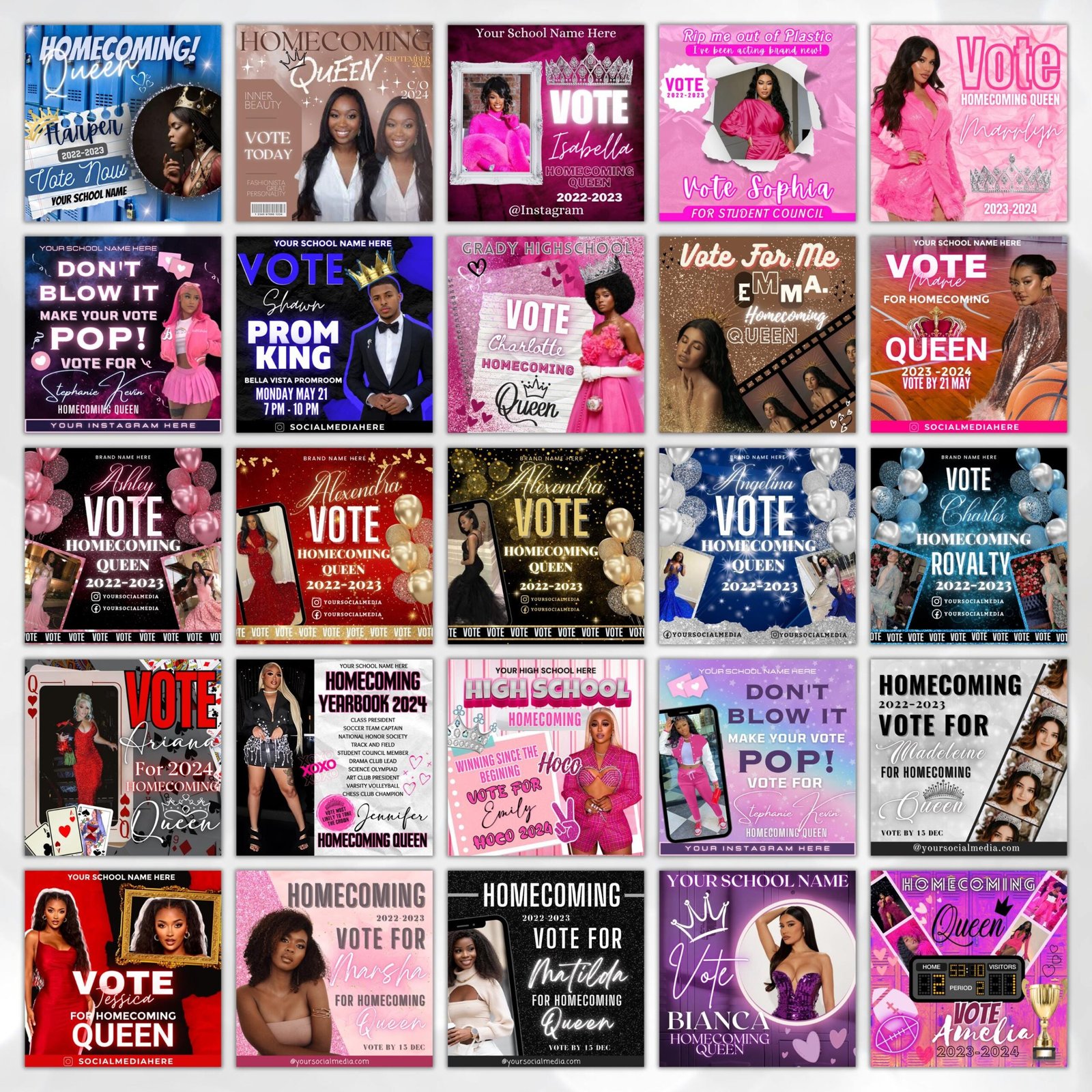 Editable Homecoming Queen Campaign Flyer Bundle, Homecoming Election Campaign Flyer Pack, Vote for Queen Canva Template, Vote for Me flyer