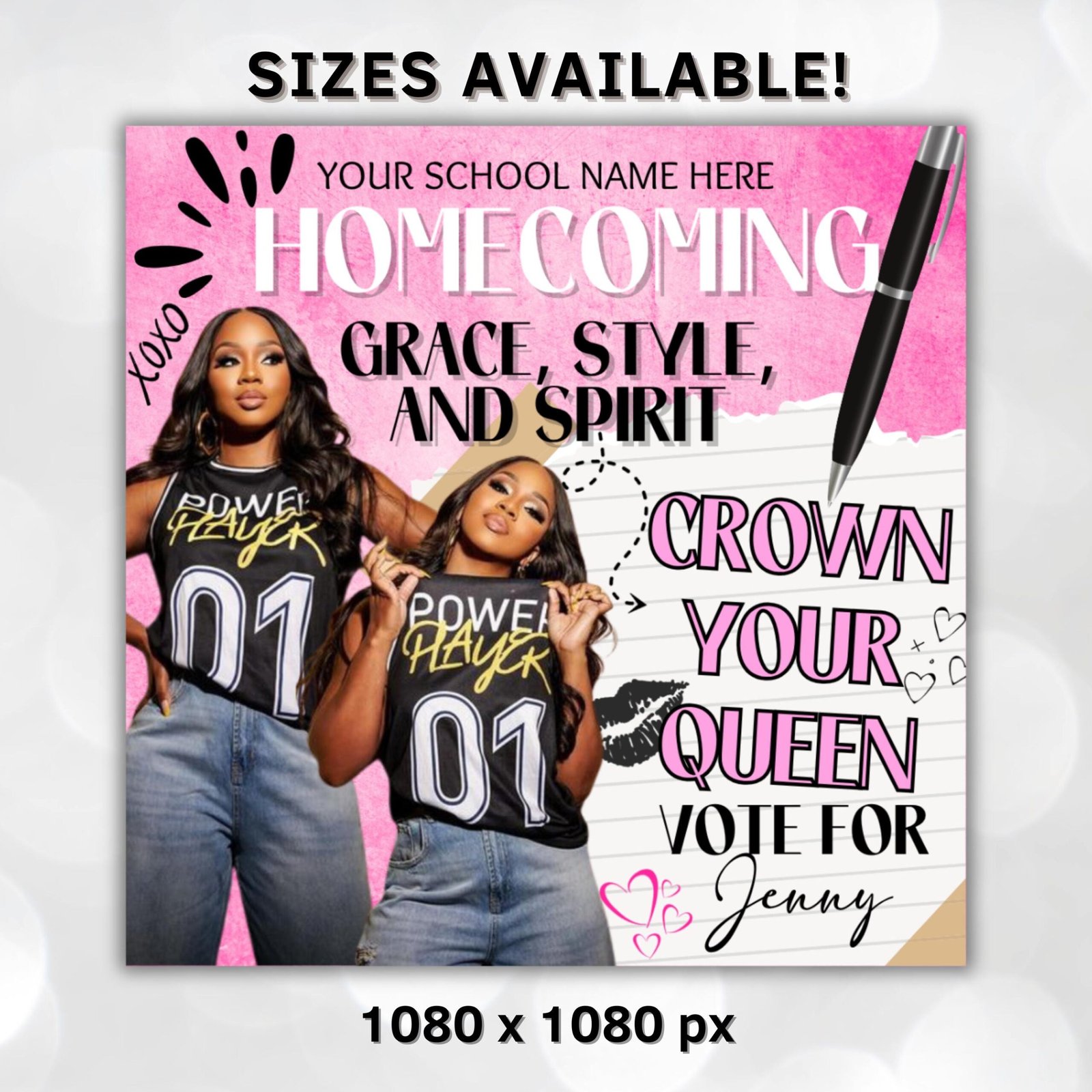 Make an unforgettable flyer with our comprehensive **Editable Homecoming Queen Campaign Flyer Bundle**! This digital download provides everything you need to captivate voters and win the crown. Design
