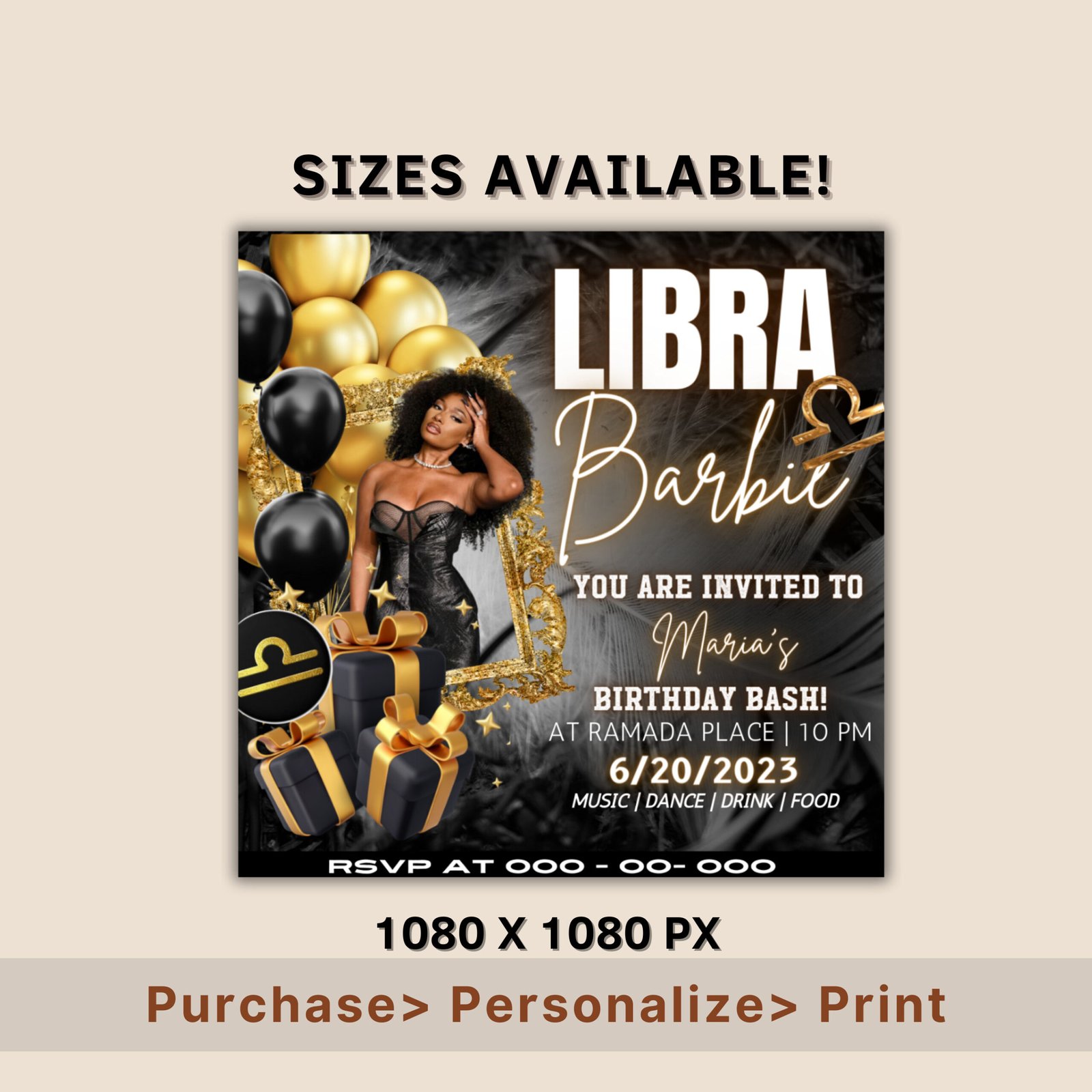 Editable Libra Birthday Flyer, Birthday Template, Birthday Girl, Gold and Black Birthday Flyer, Virgo Season, Party Flyer, Celebration Flyer