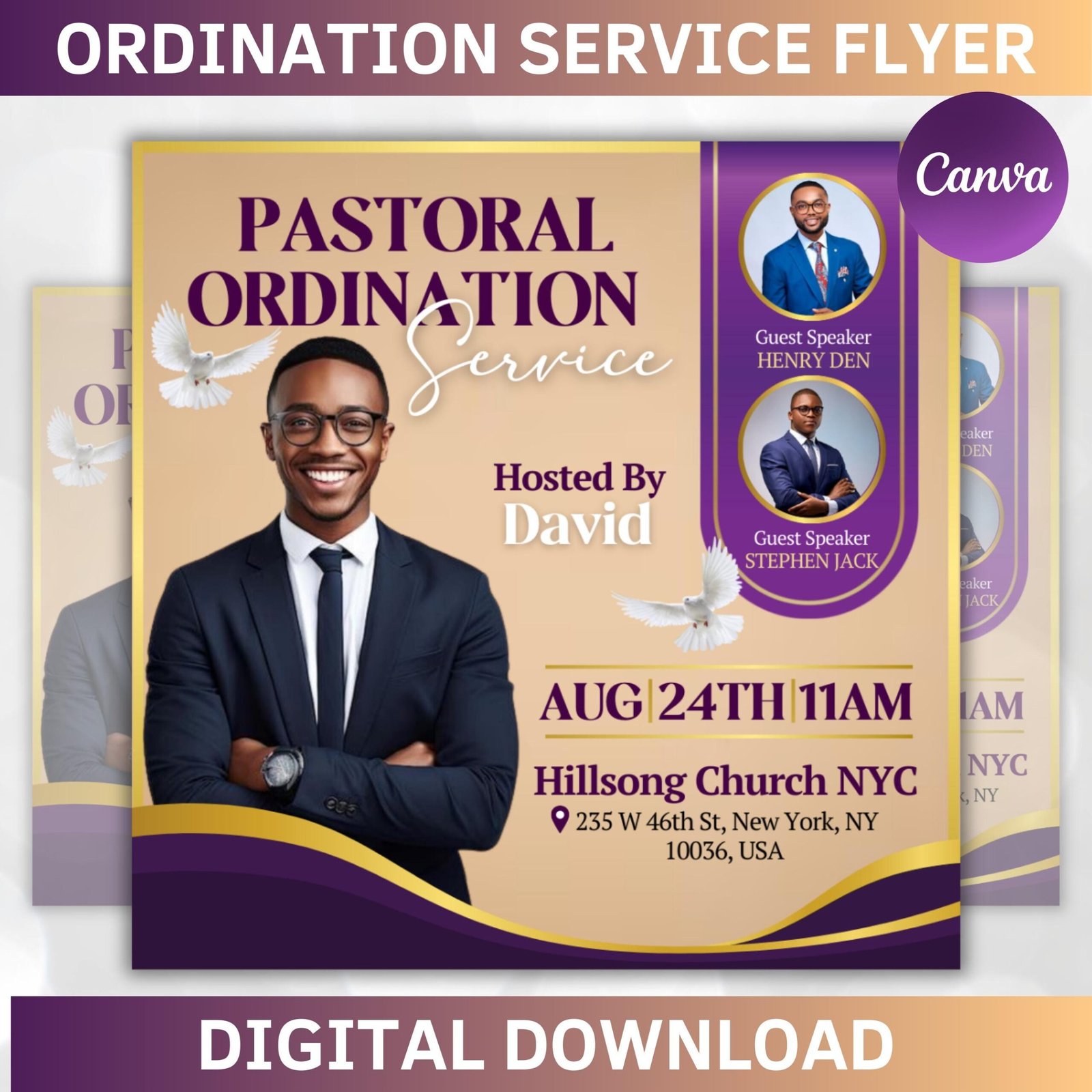 Editable Ordination Service Flyer, Church Flyer, Ordination Church Flyer, Pastoral Ordination Service flyer program, Canva editable, digital