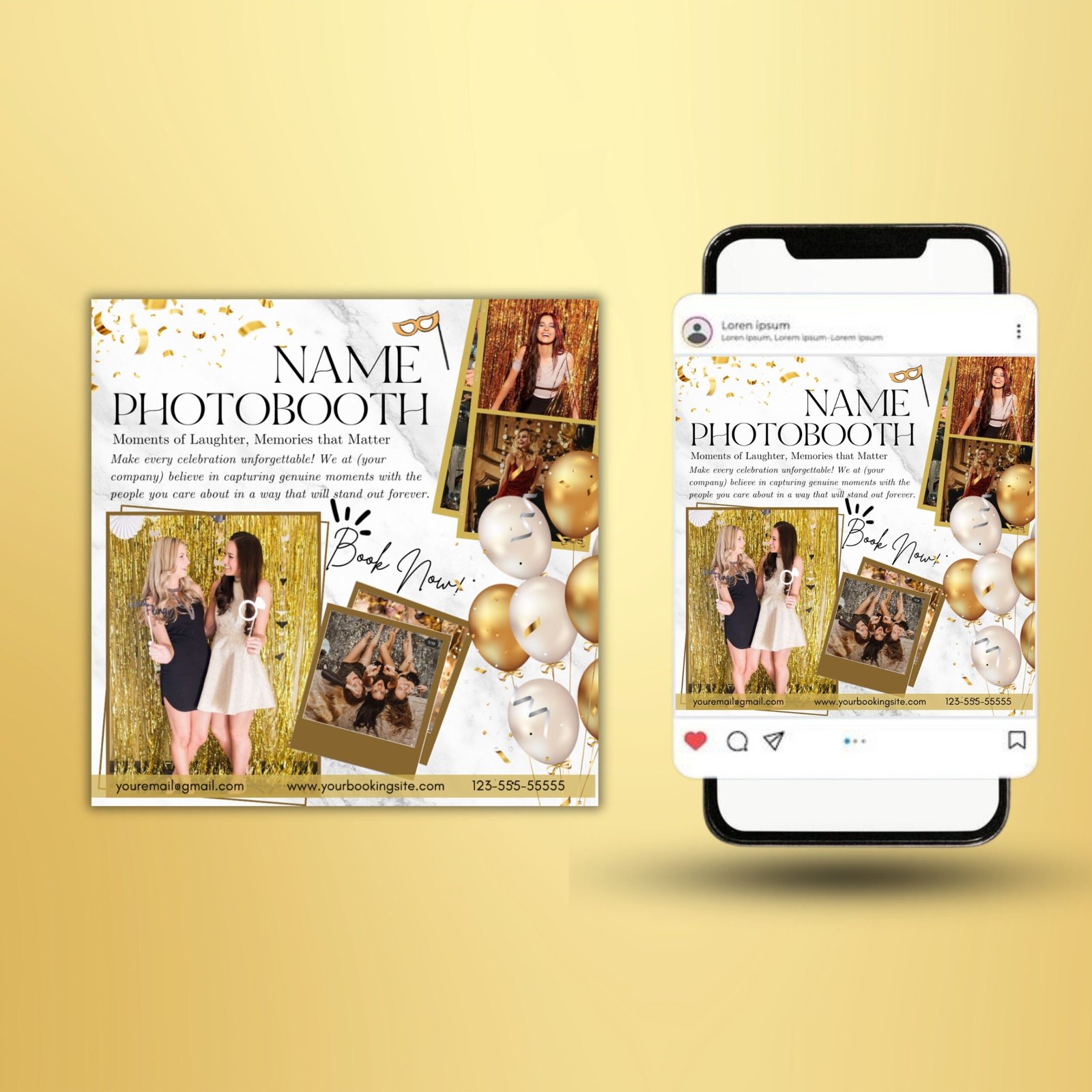 Editable Photobooth Flyer Canva template,DIY Party Rental Flyer,Instagram Post Socialmedia Template,Photobooth Marketing Advertisement flyer