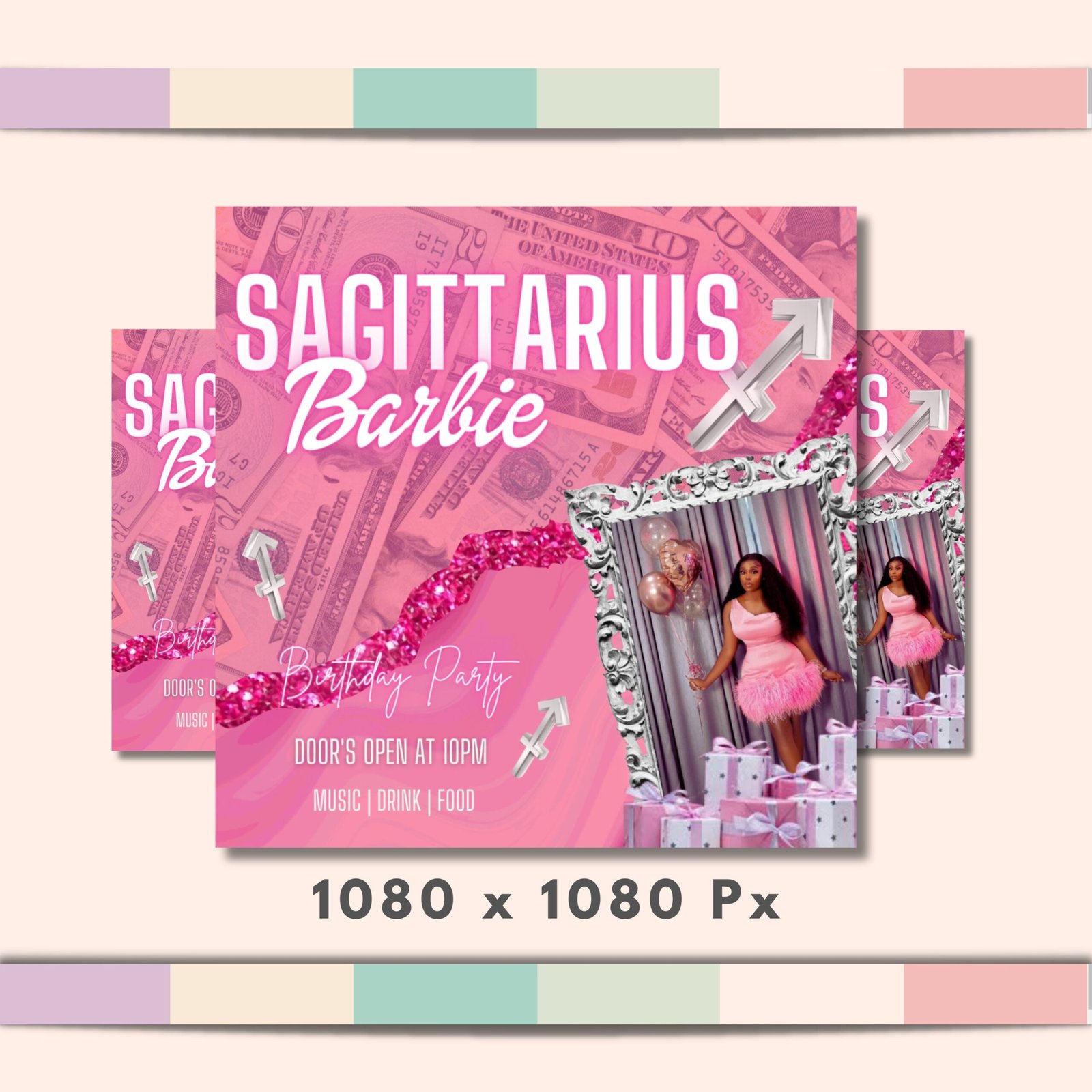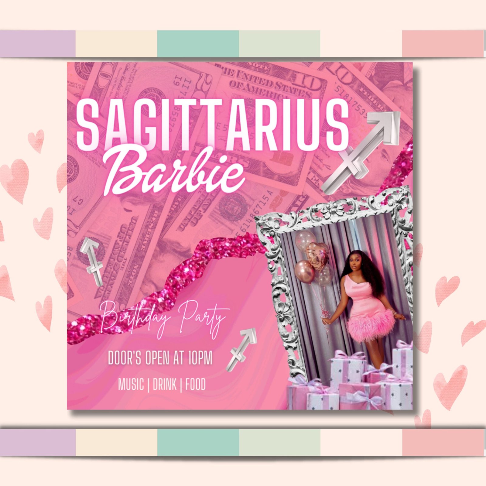 Editable Sagittarius Birthday Flyer, Birthday Template, Birthday Girl, Pink Birthday Flyer, Sagittarius, Party Flyer, Celebration Flyer