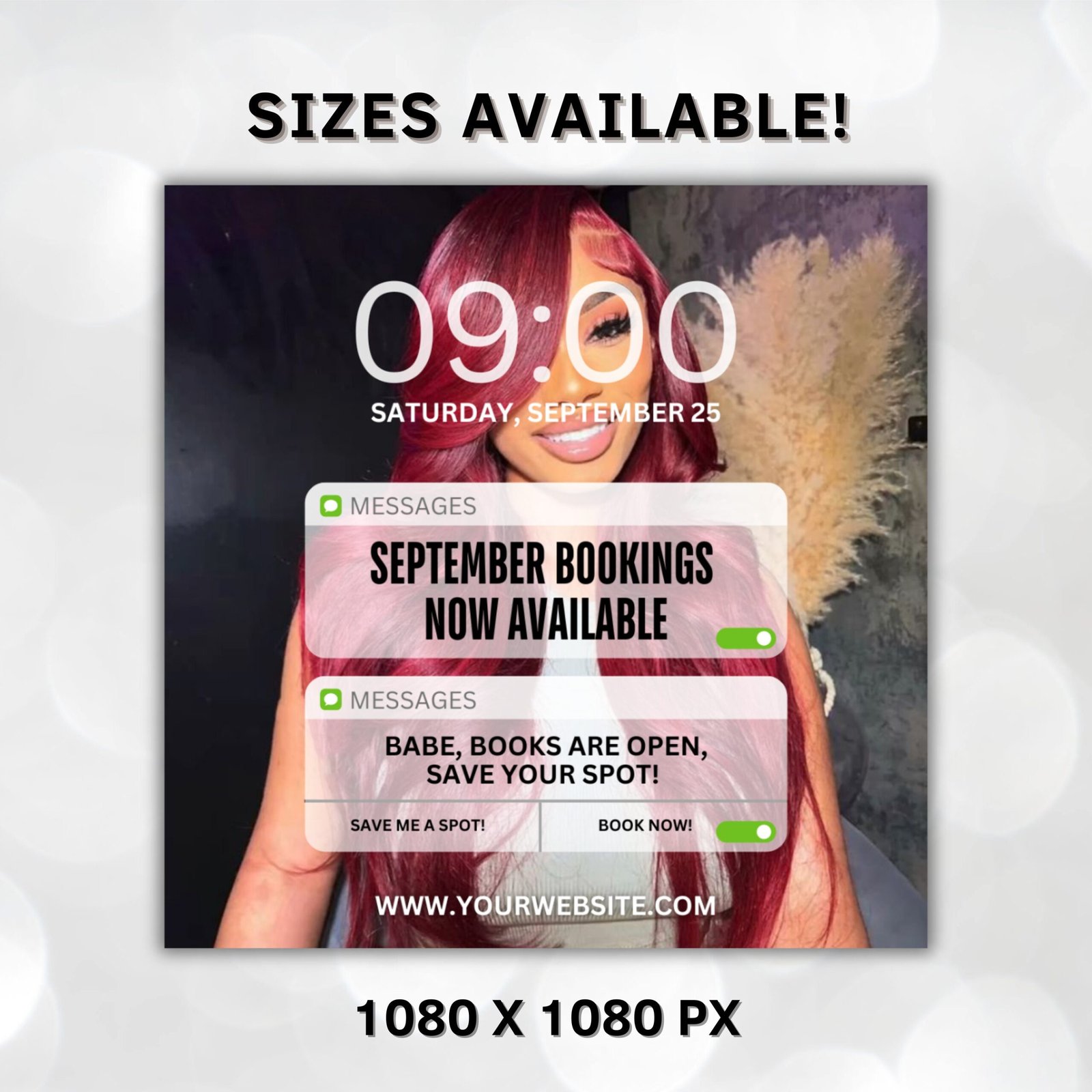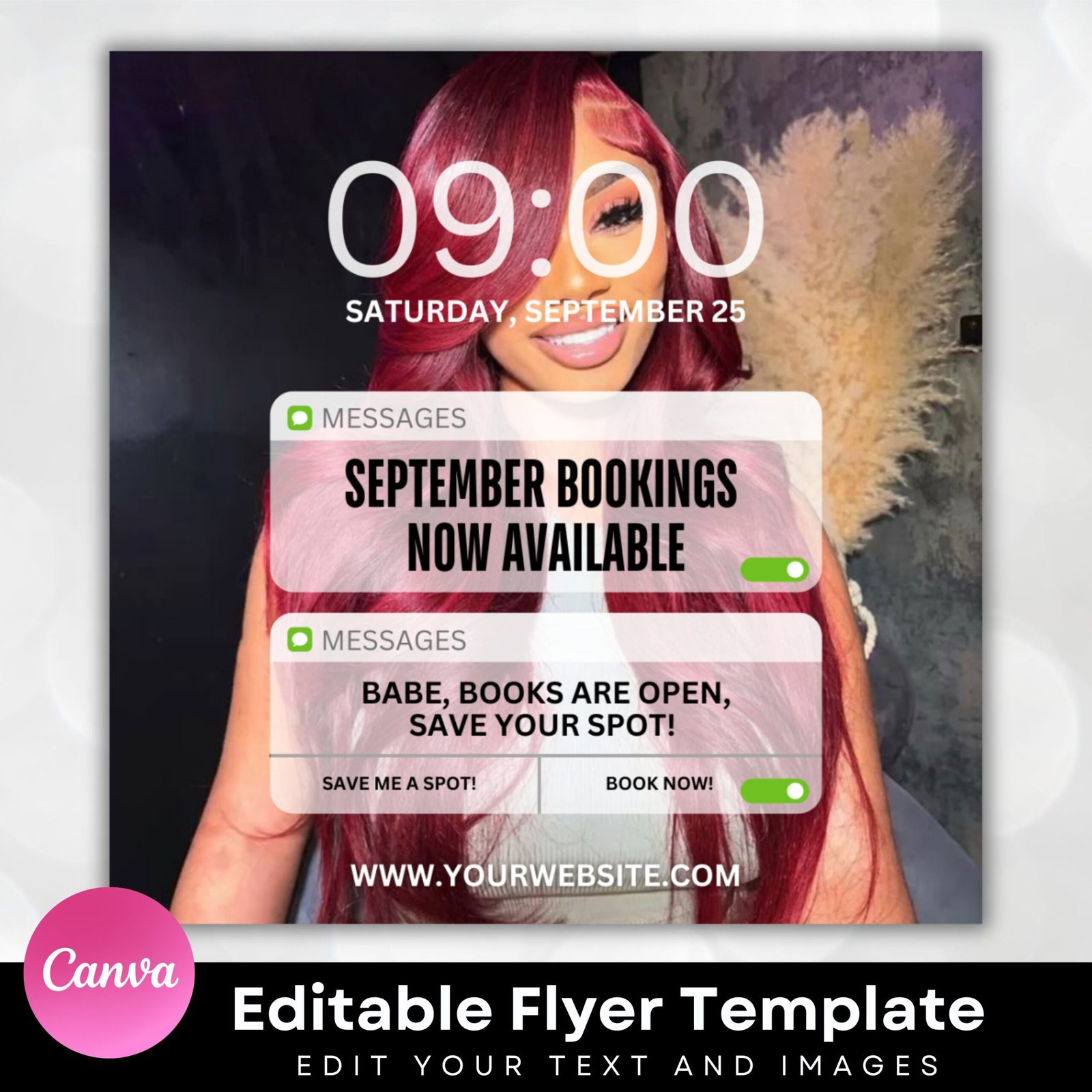 Editable September Booking Flyer, DIY Hair Lash Makeup Nail Appointments Available Flyer Template, Social Media Flyer, Book Now Flyer