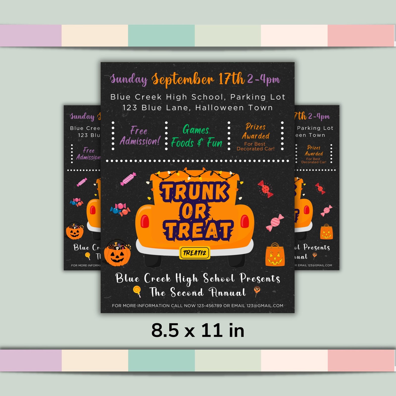 Make your Halloween event stand out with this amazing Trunk or Treat Flyer! It’s the perfect way to get guests excited and ready to celebrate. With its one-of-a-kind design and