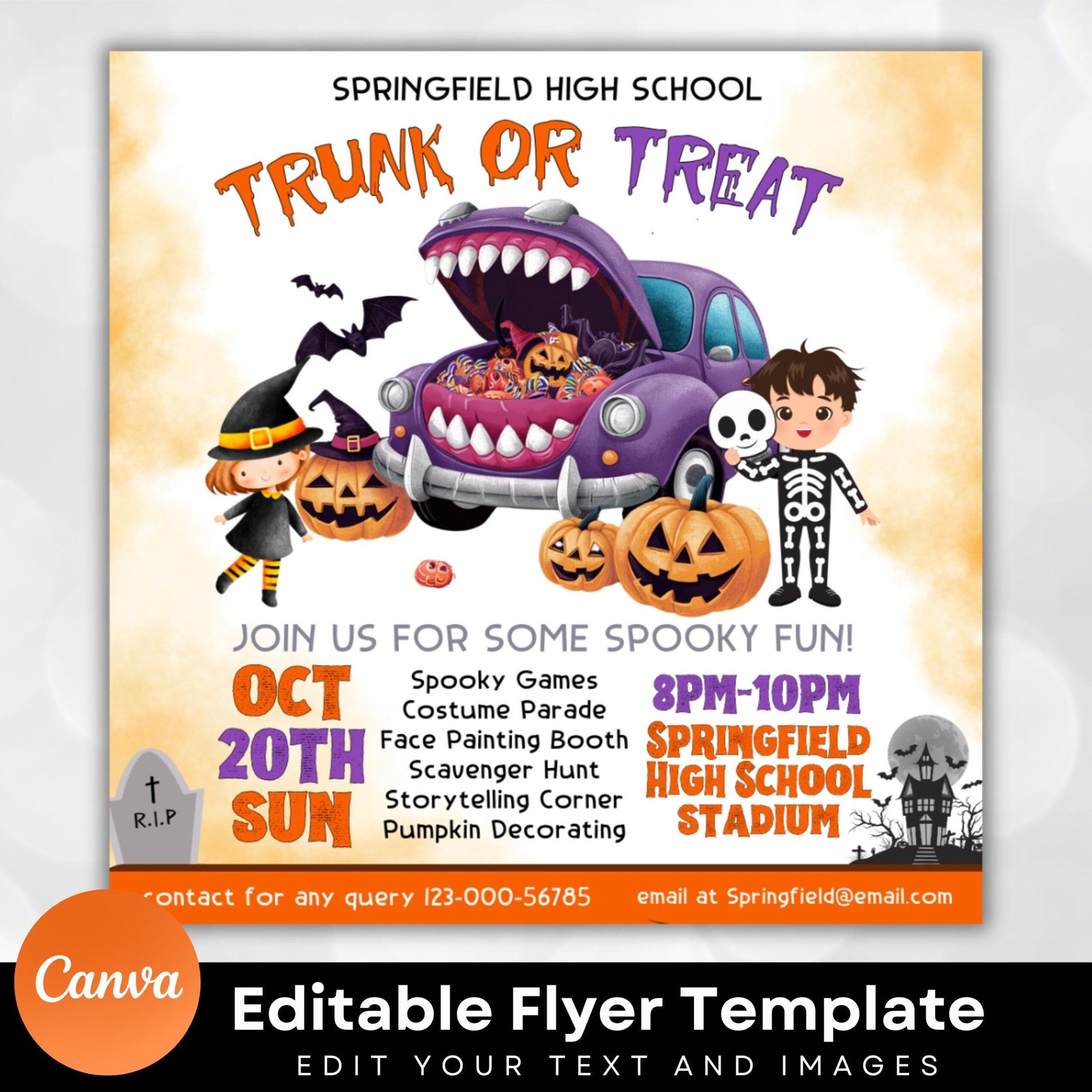 EDITABLE Trunk or Treat, Halloween Flyer, Trunk or Treat Invitation Printable Halloween Invitation, Community Event, Halloween Party Invite